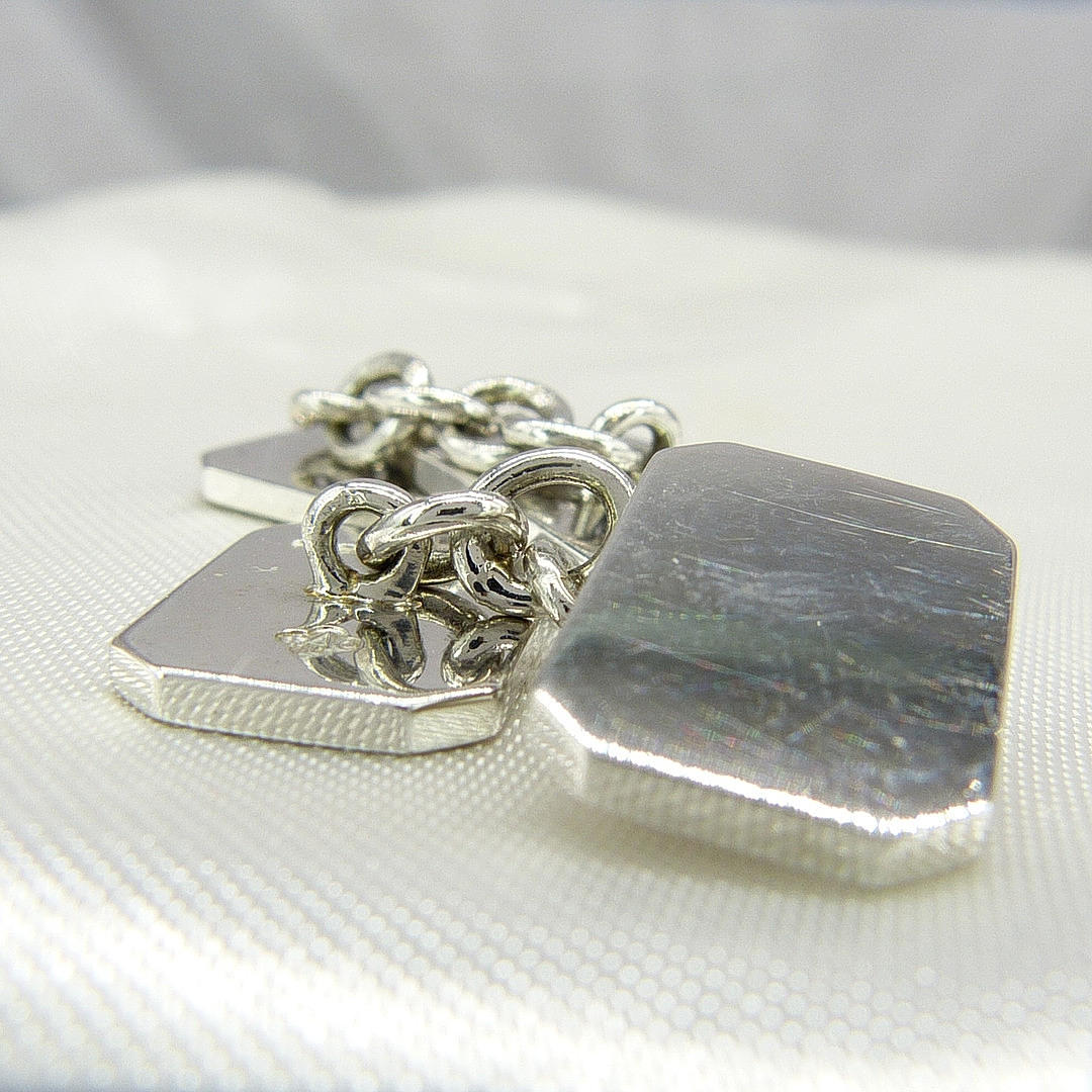 A Pair Of Stylish, Solid 9ct White Gold Rectangular Shaped Cufflinks.