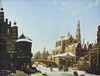 4445616. OIDENTIFIERAD KONSTNÄR. Cityscape, oil on panel, indistinctly signed.