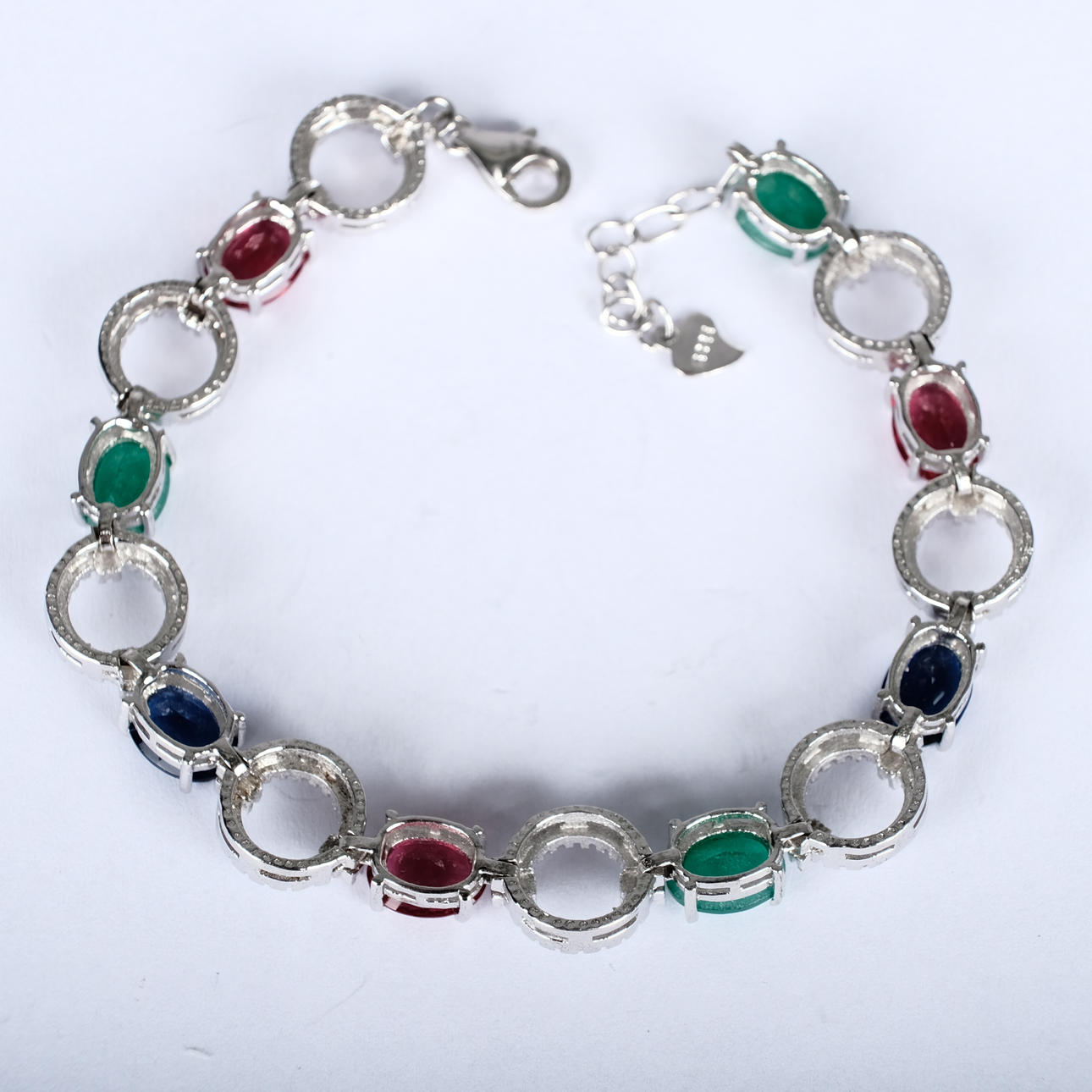 4445985. BRACELETS. Silver with different coloured stones 20th century.