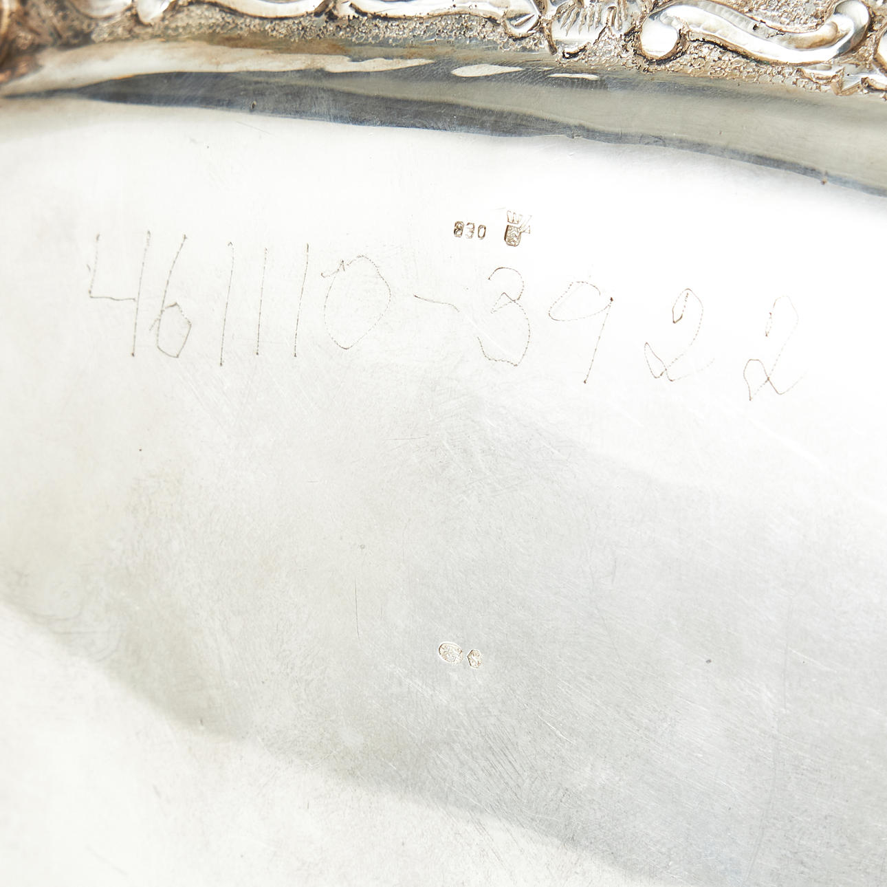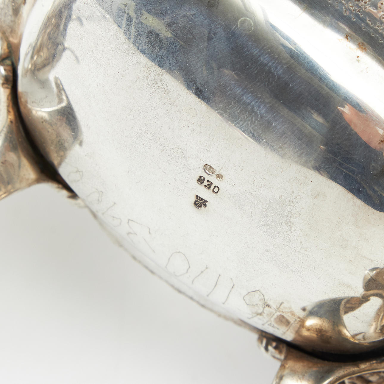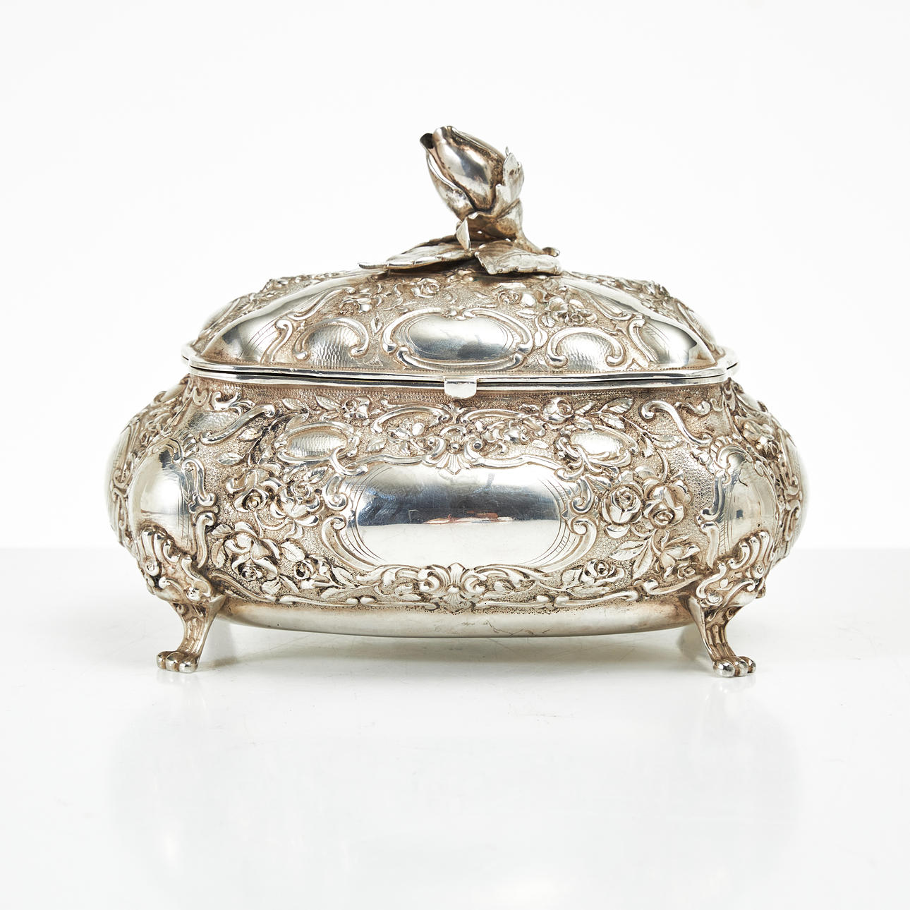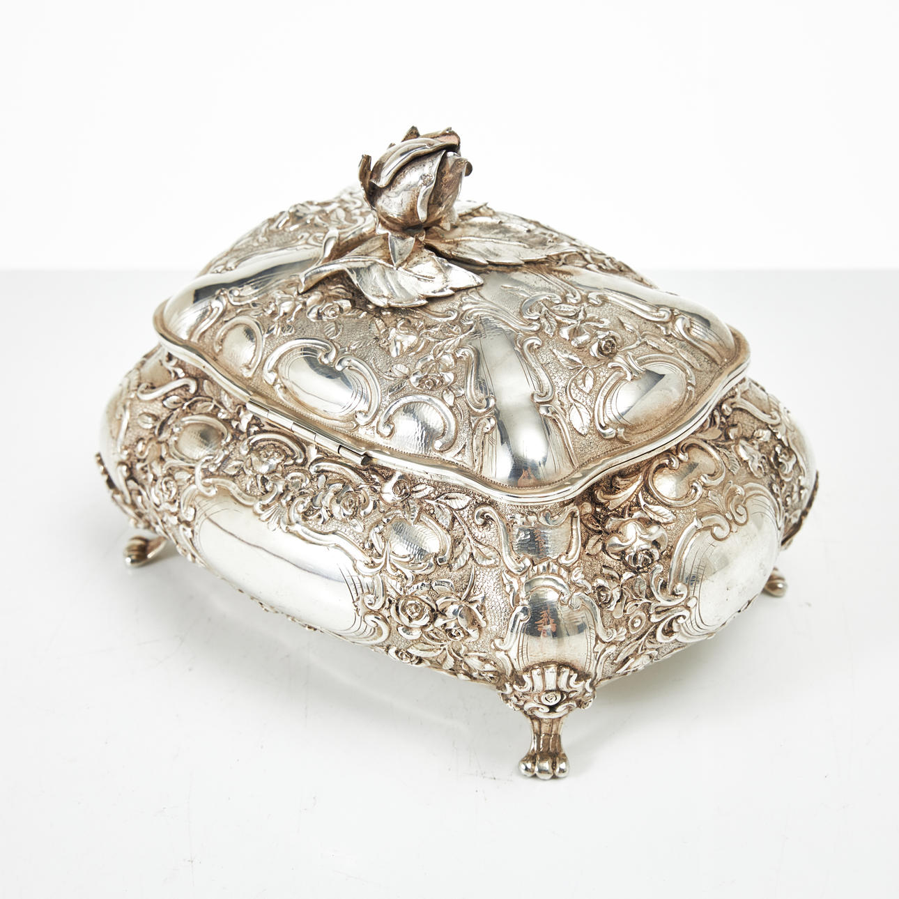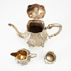 Consisting of a coffee pot with height approx. 23 cm, milk jug with height 10 cm, vase with height 7,5 cm, box with height 12 cm, 18 x 13,5 cm, total weight 1835 g.