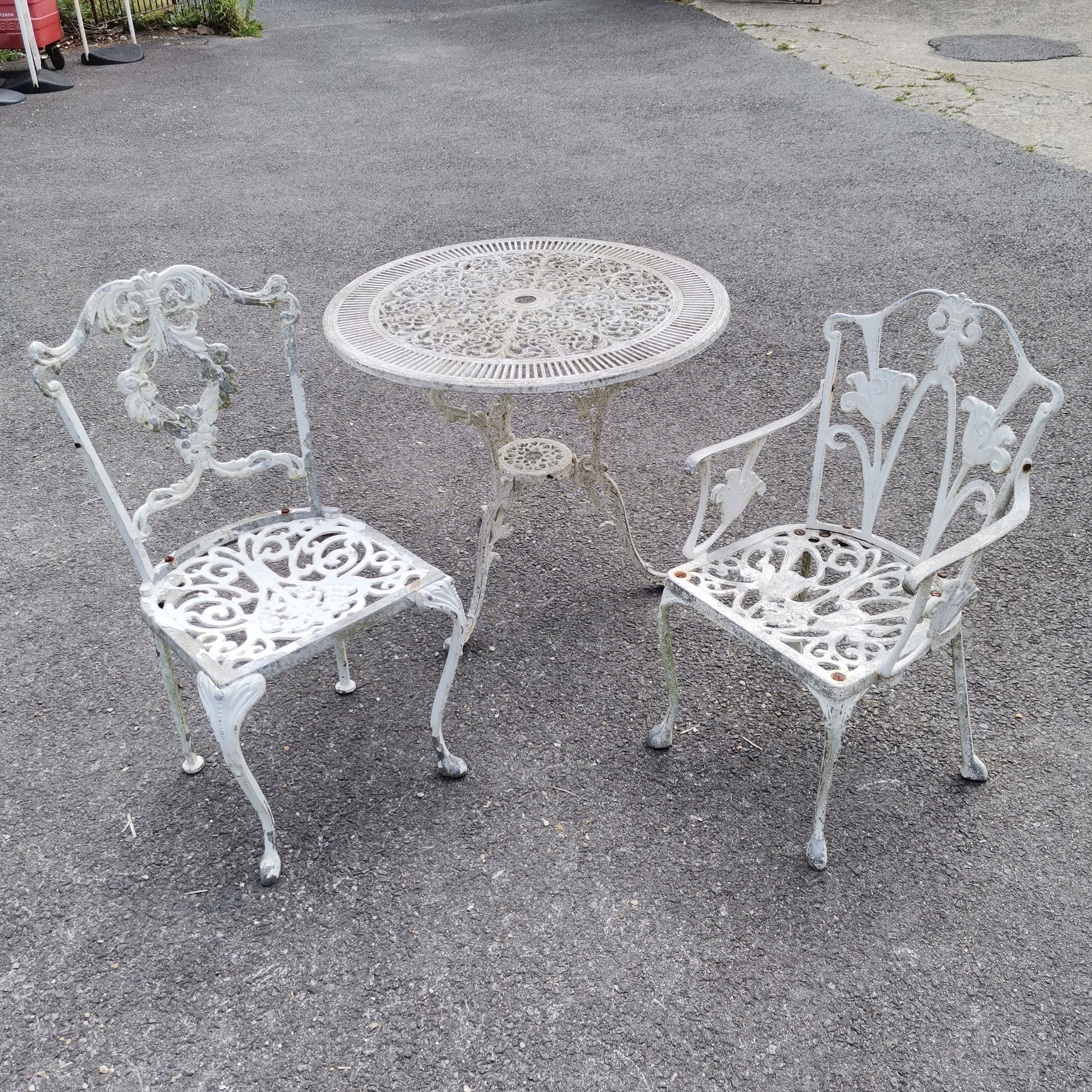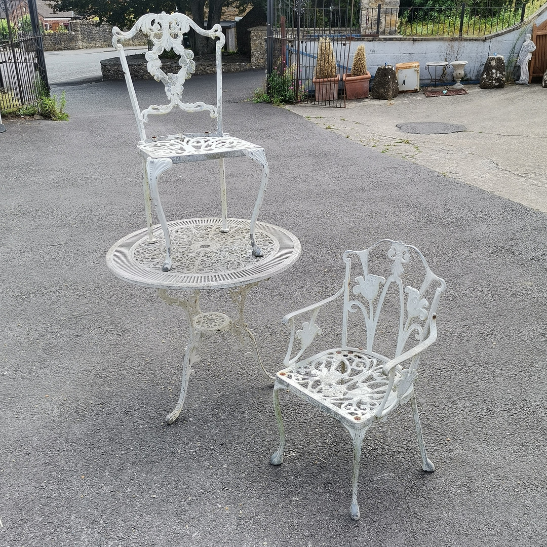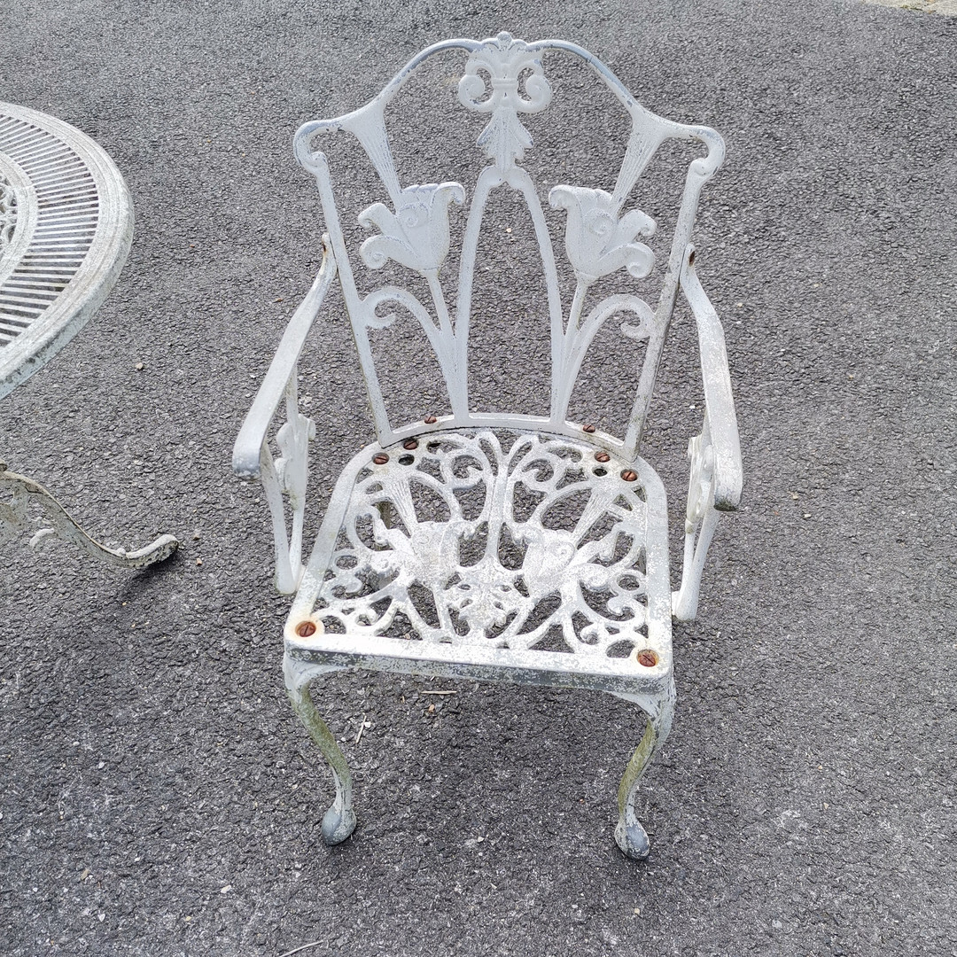 4446333. ALUMINIUM CIRCULAR TABLE & CHAIRS.