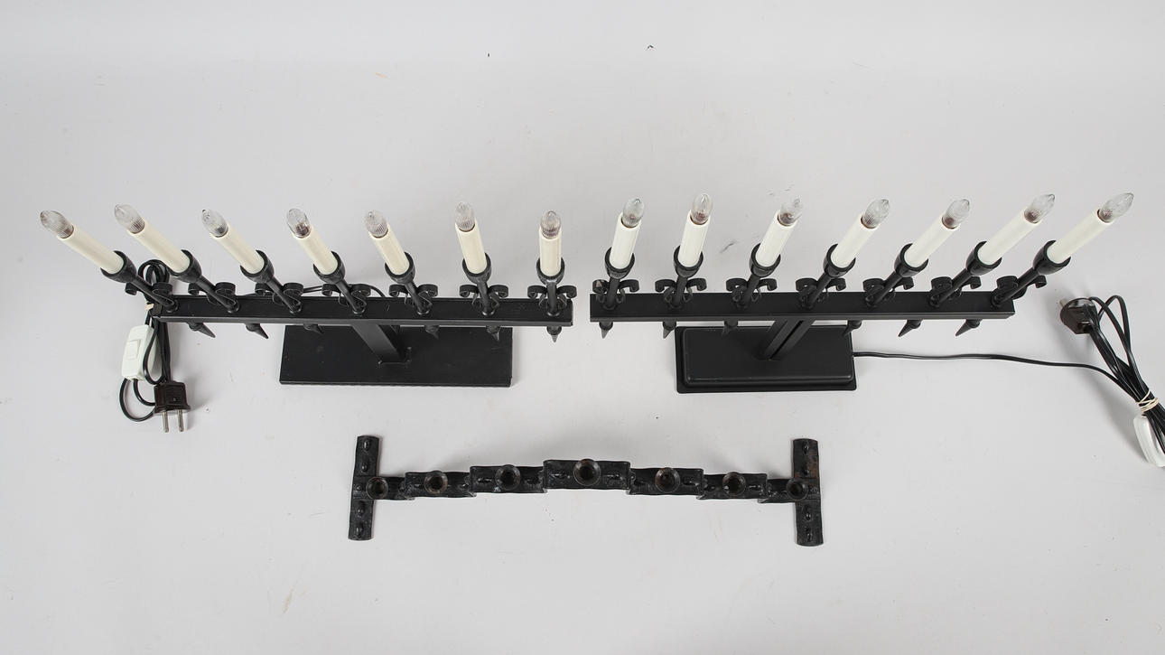 2 electric candle sticks, JUL600 & JUL700, height approx. 33 & 35 cm, length approx. 36 cm.