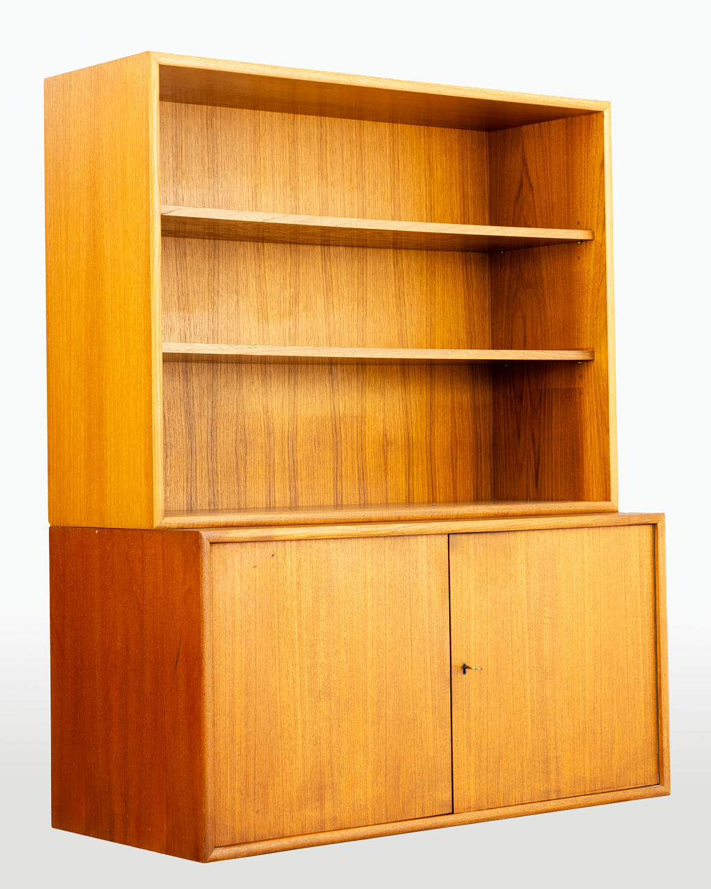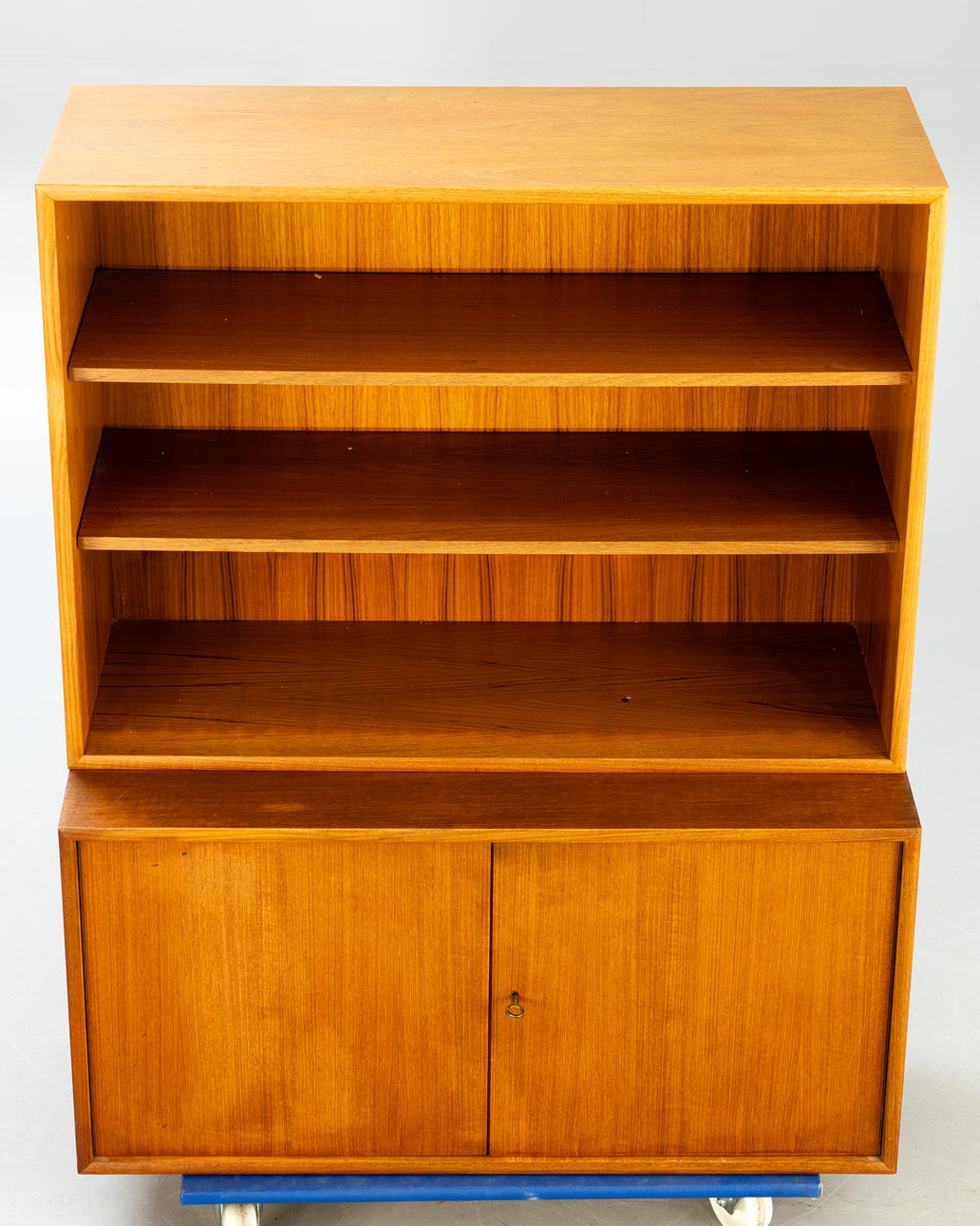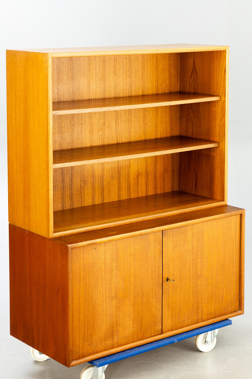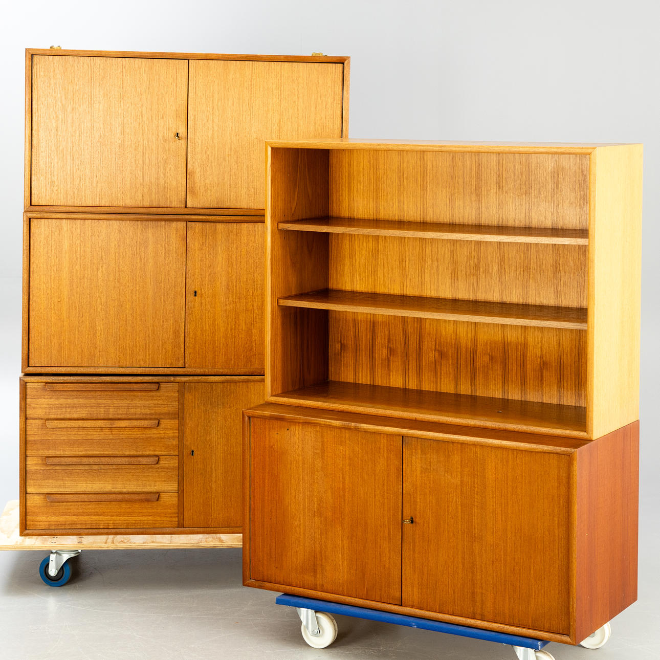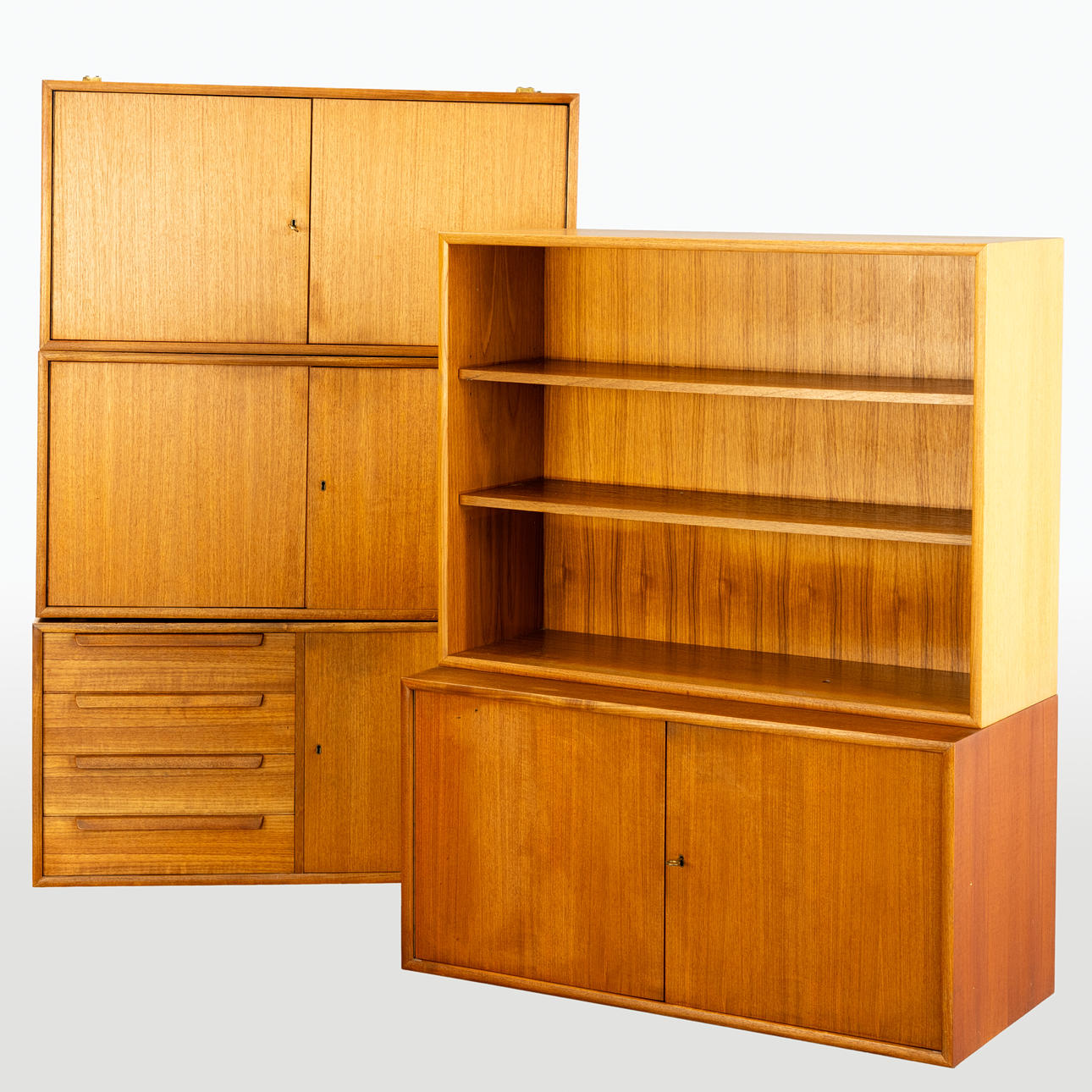 teak veneer 4 cabinet elements, approx. H 50 cm, W 100 cm, D 45 cm 1 open shelf unit of approx. H 75 cm, W 100 cm, D 33 cm.