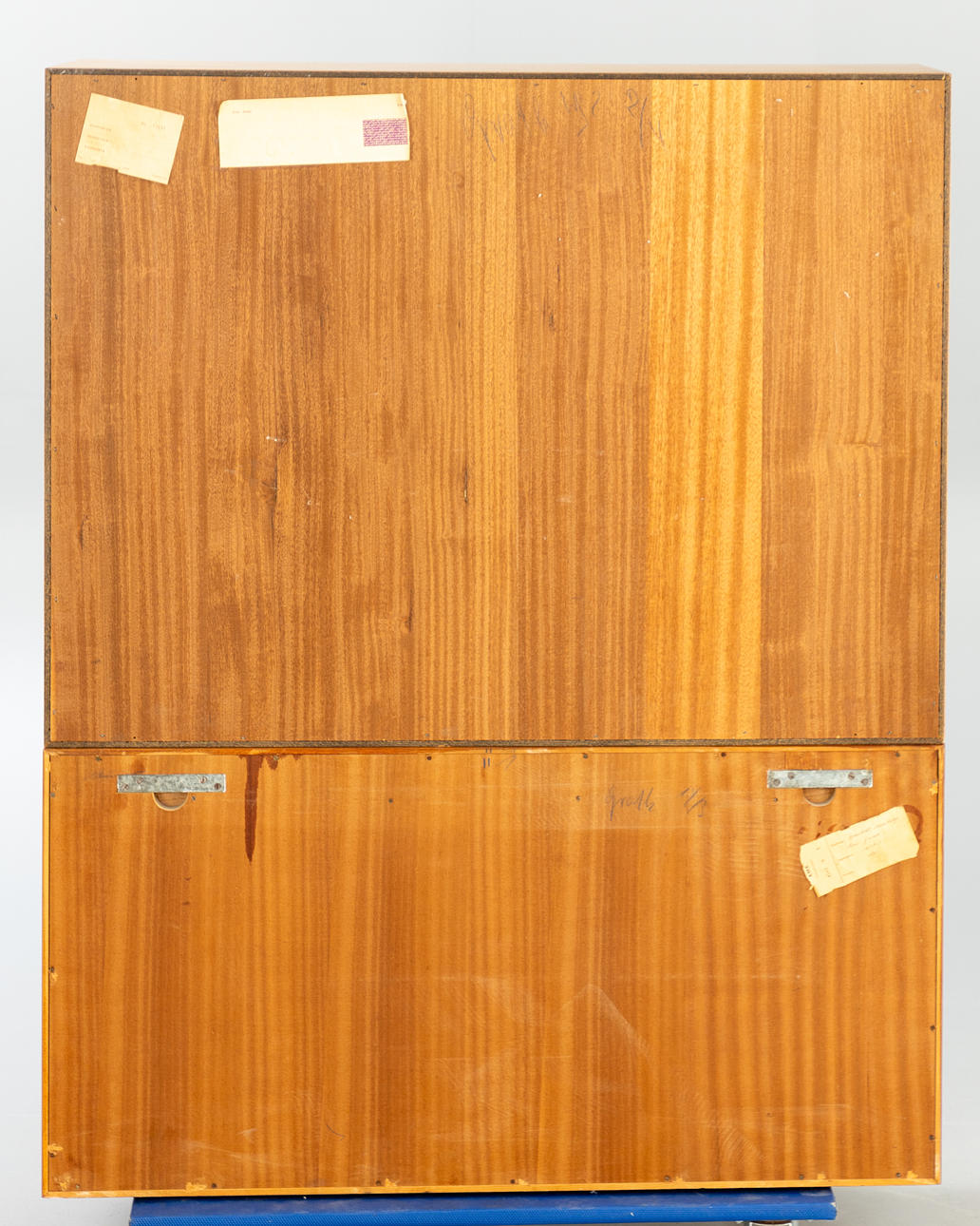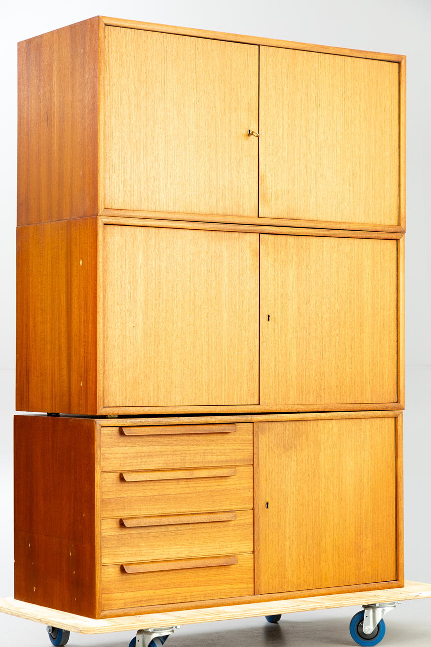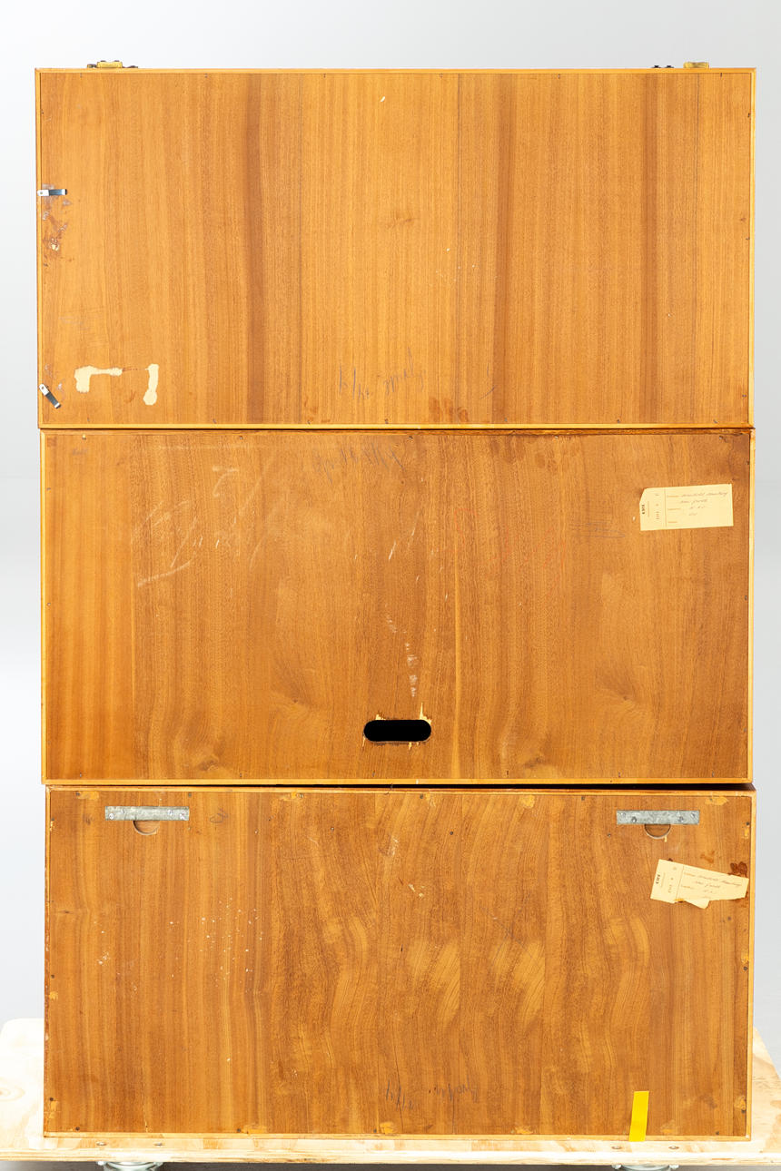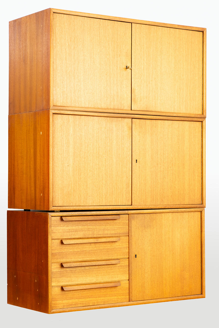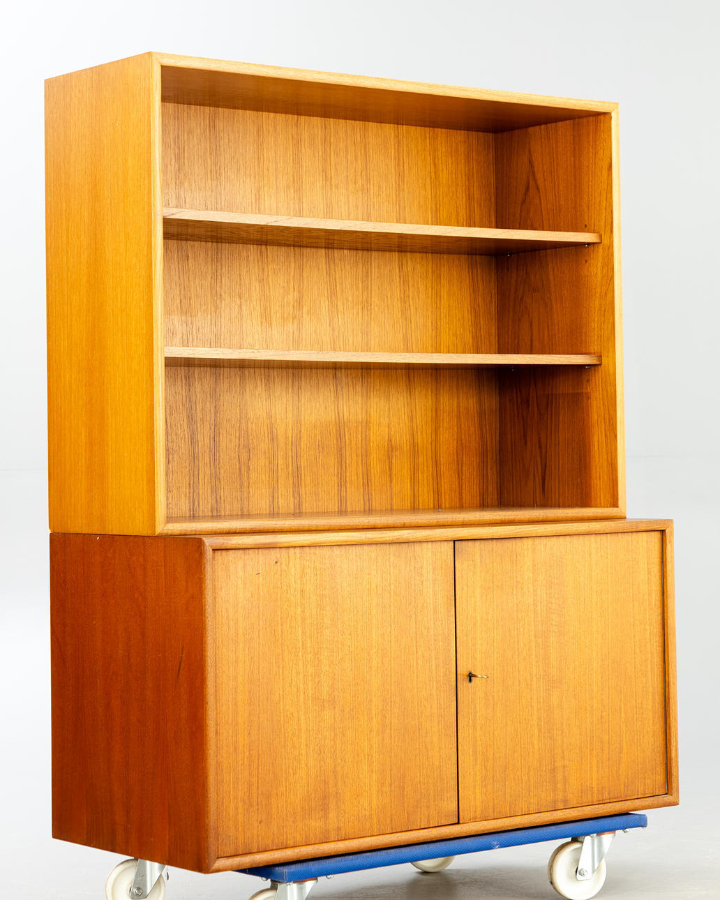 teak veneer 4 cabinet elements, approx. H 50 cm, W 100 cm, D 45 cm 1 open shelf unit of approx. H 75 cm, W 100 cm, D 33 cm.