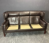 Upholstered wooden frame covered with dark brown leather.