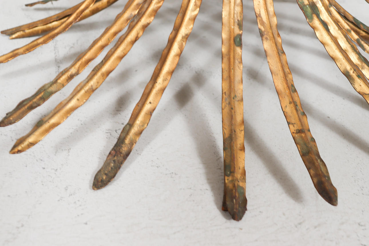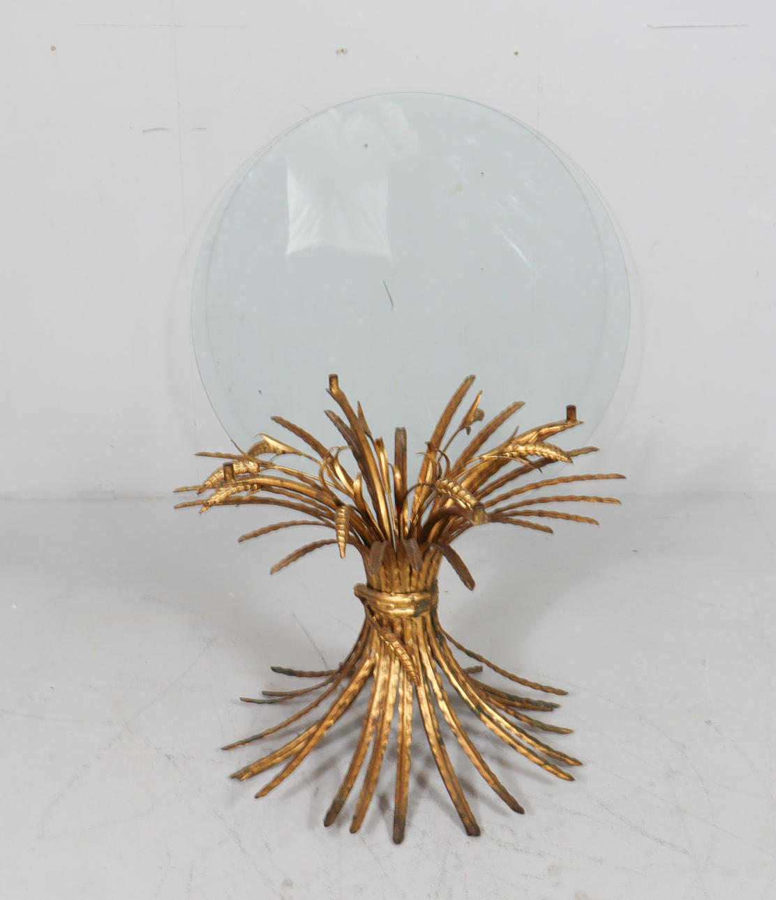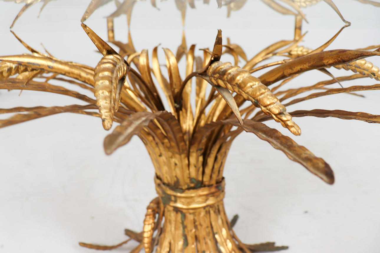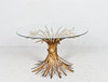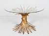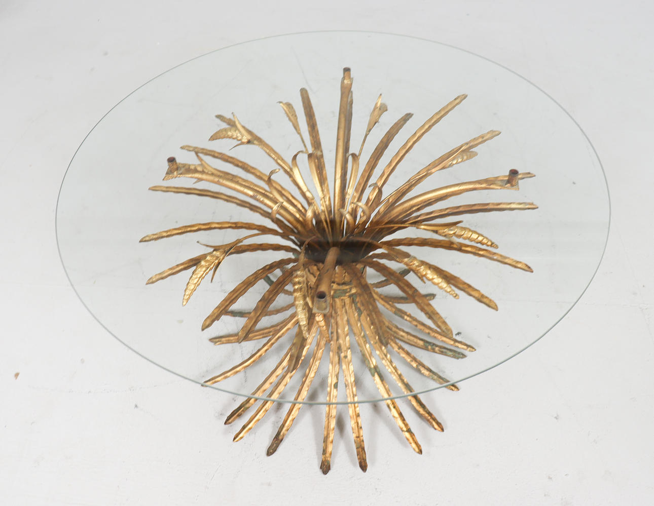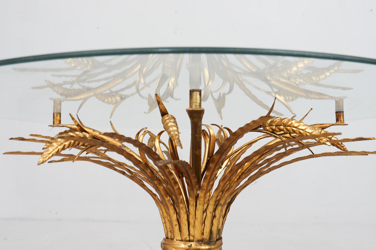 Coco Chanel table, Hans Kögl, coffee table/side table, 1970s, brass plate construction decorated with gold leaf, loose glass table top, Dimensions approx.: H: 48.5 cm, diameter: 78 cm.