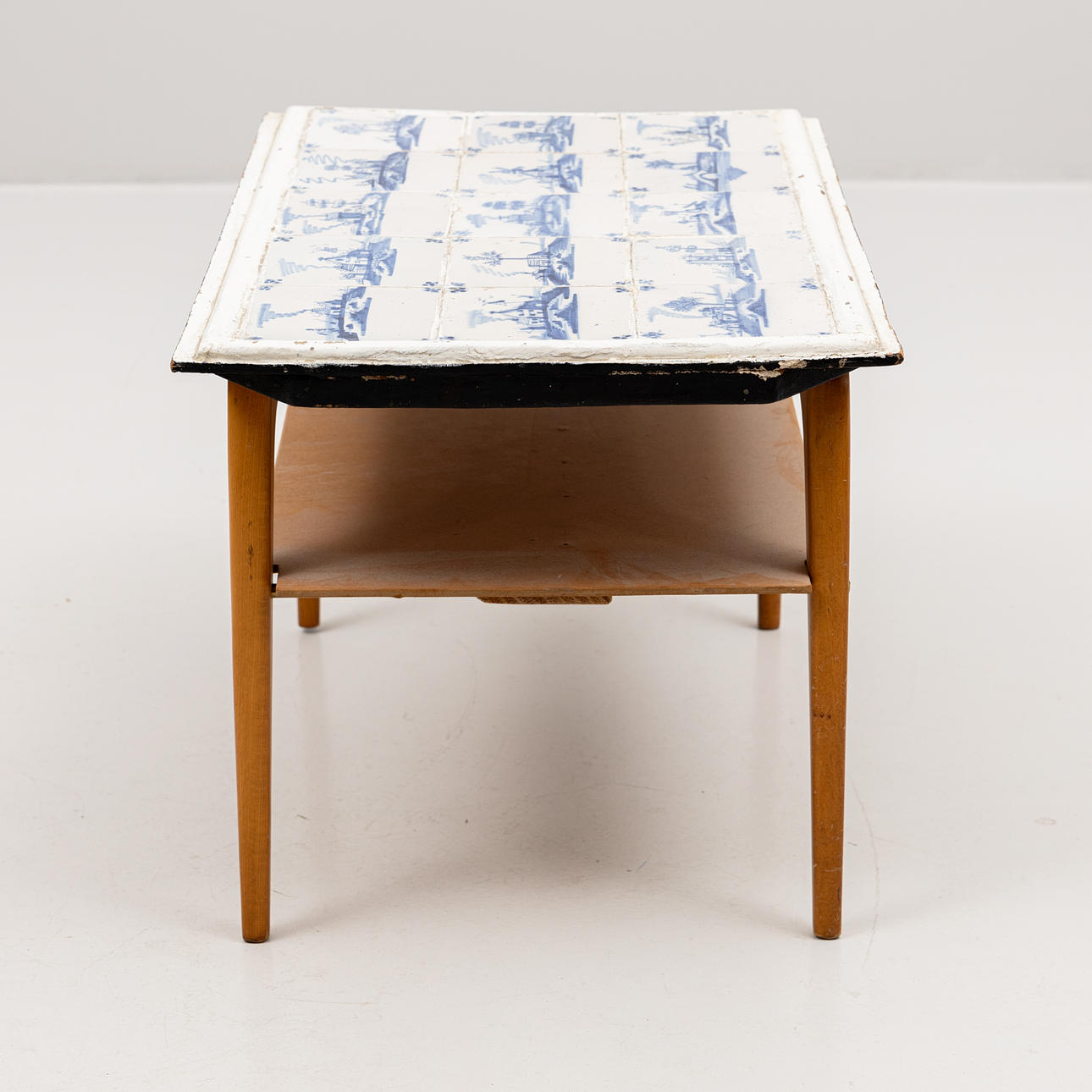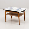 15 pieces of tiles with landscape decor. dimensions approx. 12x12 cm. Table dimensions approx. 66x46, height 44 cm.