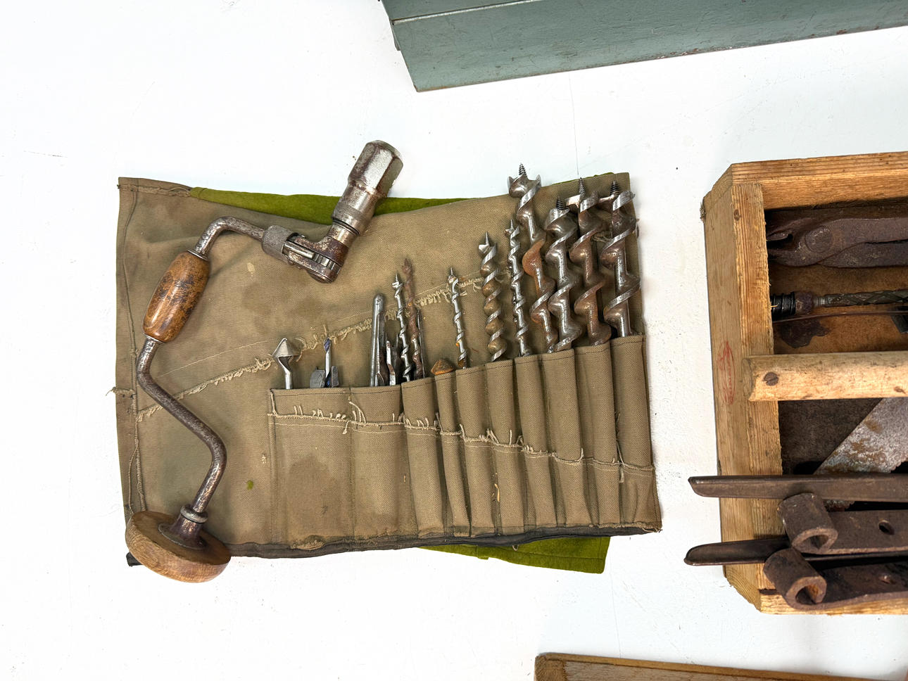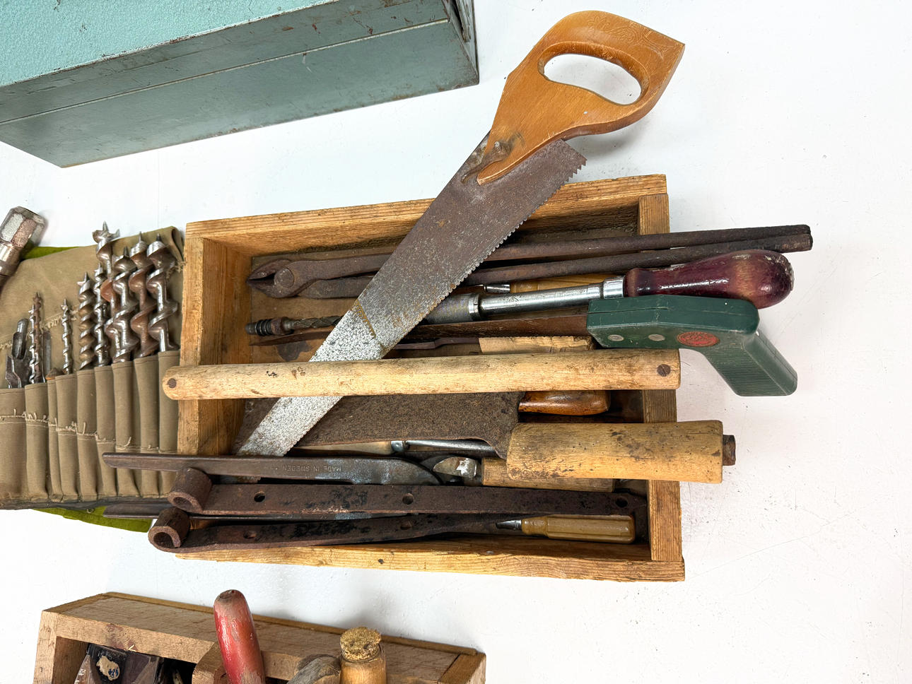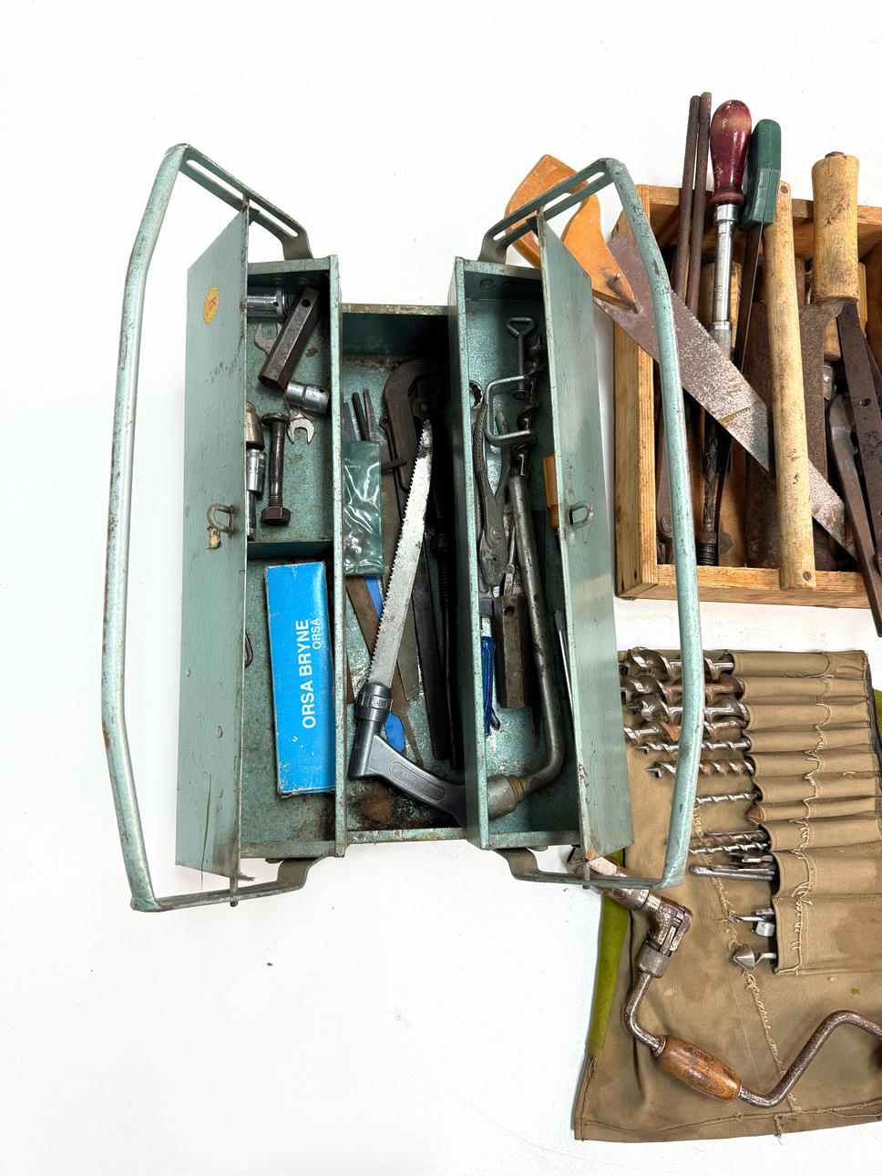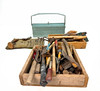 TOOL BOXES/TOOLS Wooden box, metal box 1900's.