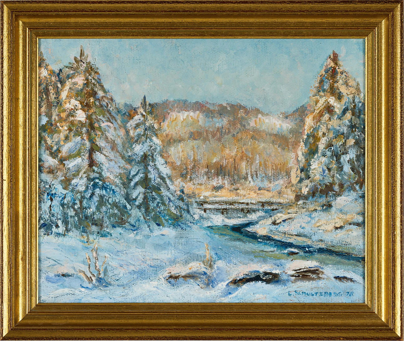 Fjällbäck in winter screed, signed and dated L. Schultzberg -78, oil on canvas.