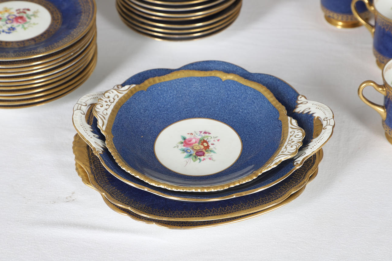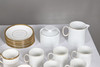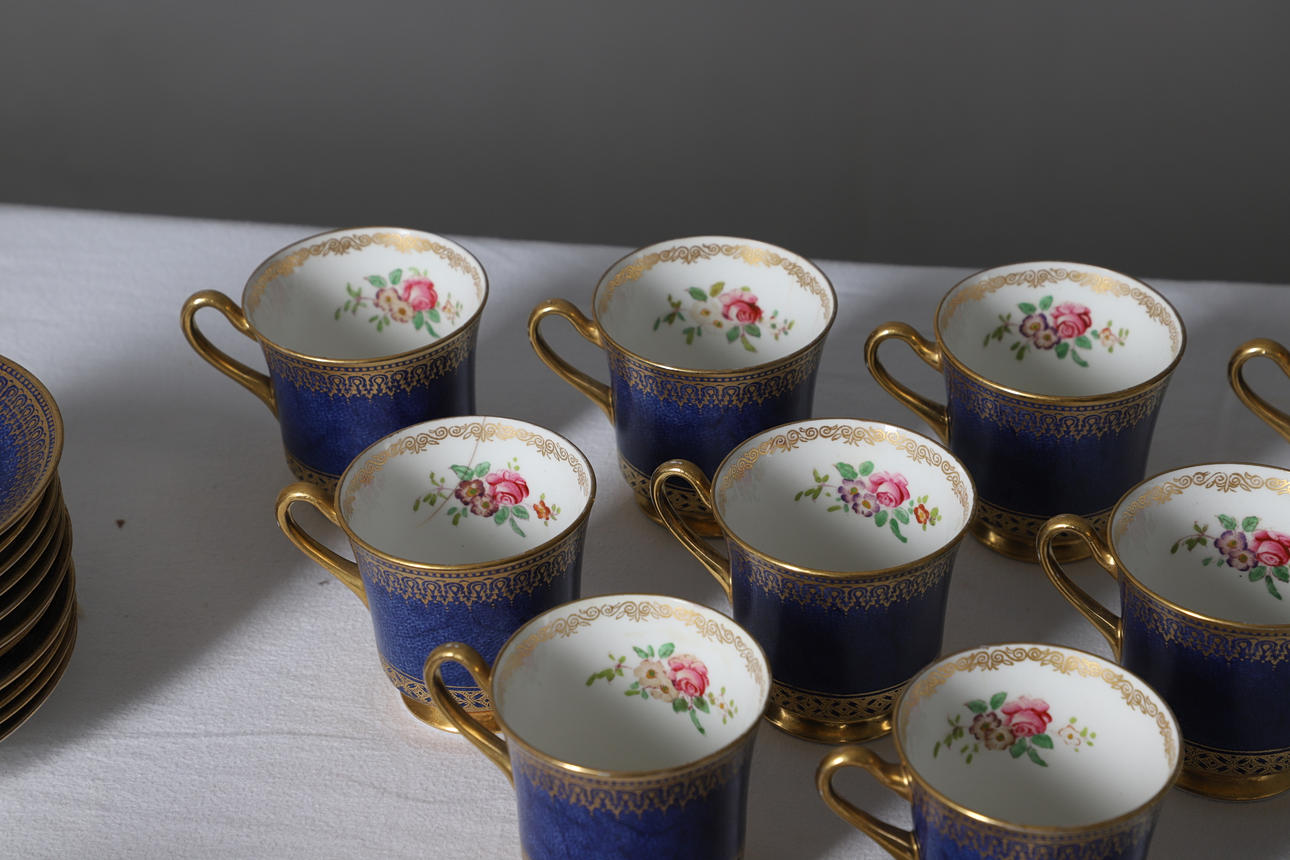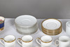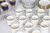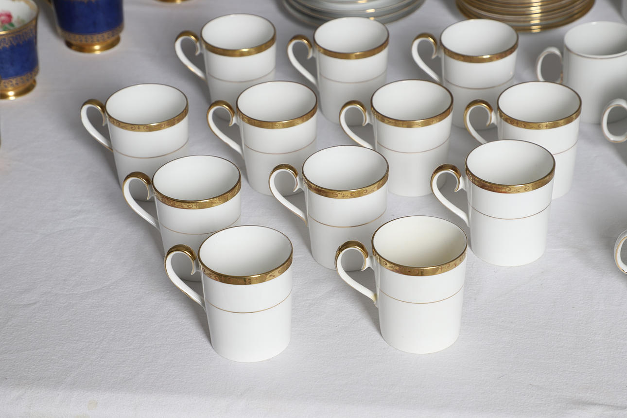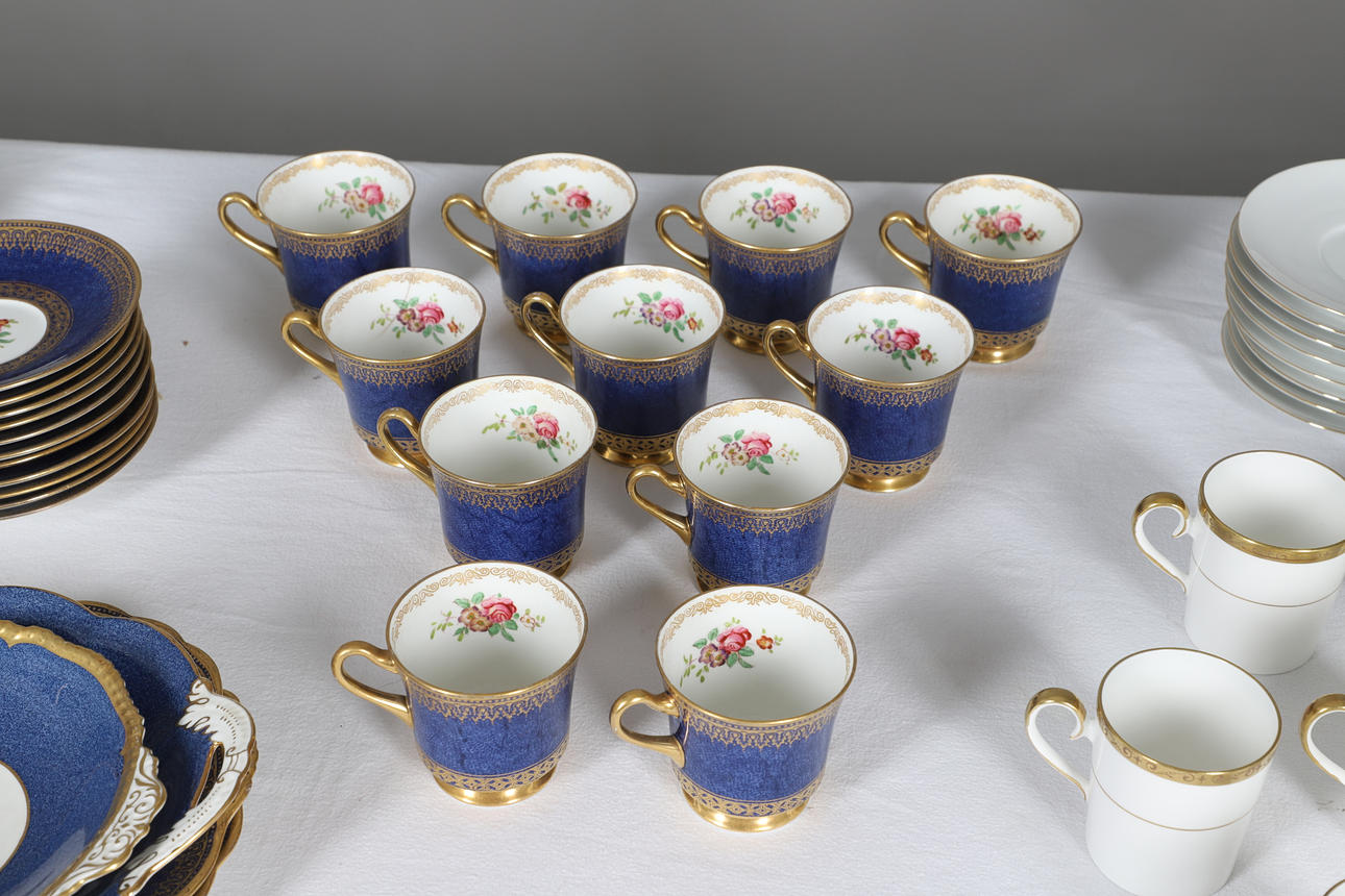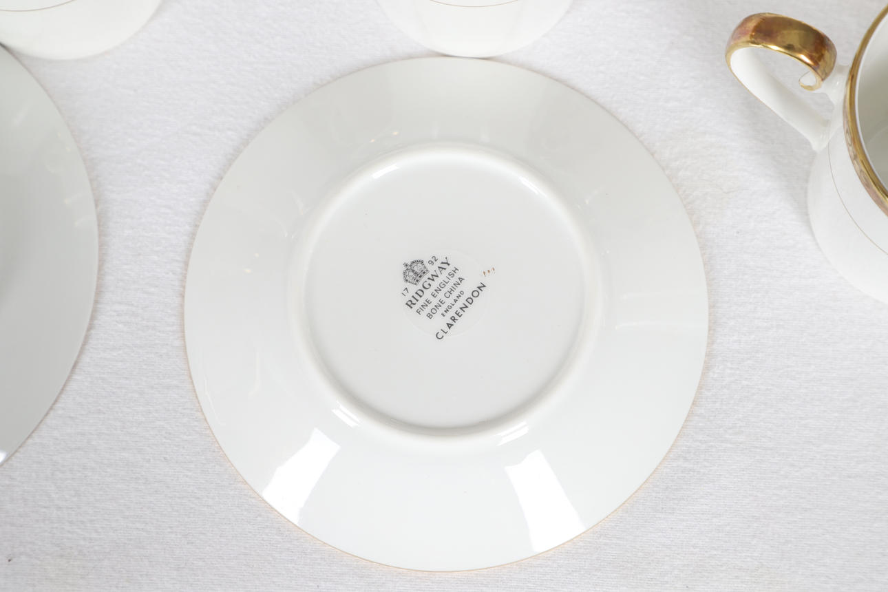 To include a part 'New Chelsea Staffs' tea set with a milk jug, 11 cups, 10 saucers, 11 dessert plates (diameter 17cm) etc. Together with a Ridgway part service and another. Approx. 80 items.