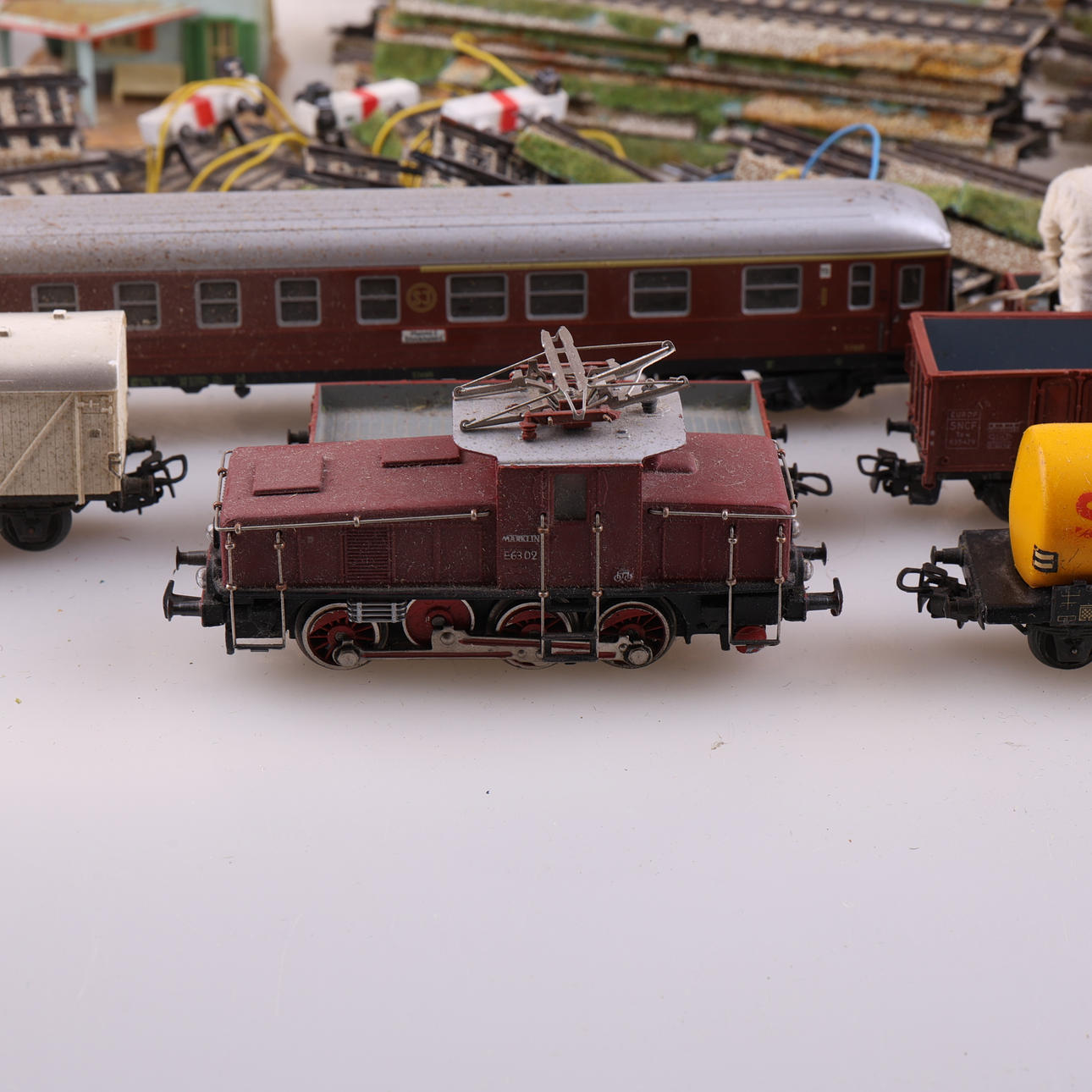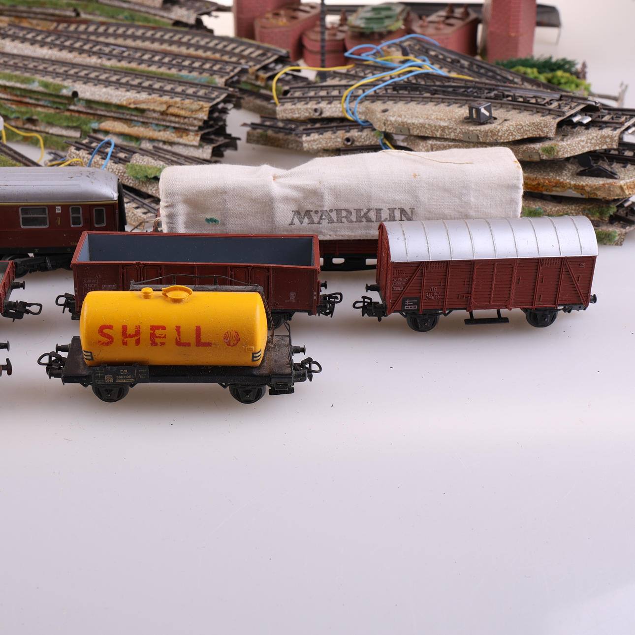 Bl, a Track, transformer, locomotive, 3 carriages, tunnel, etc. Box approx. 20x30x30 cm.