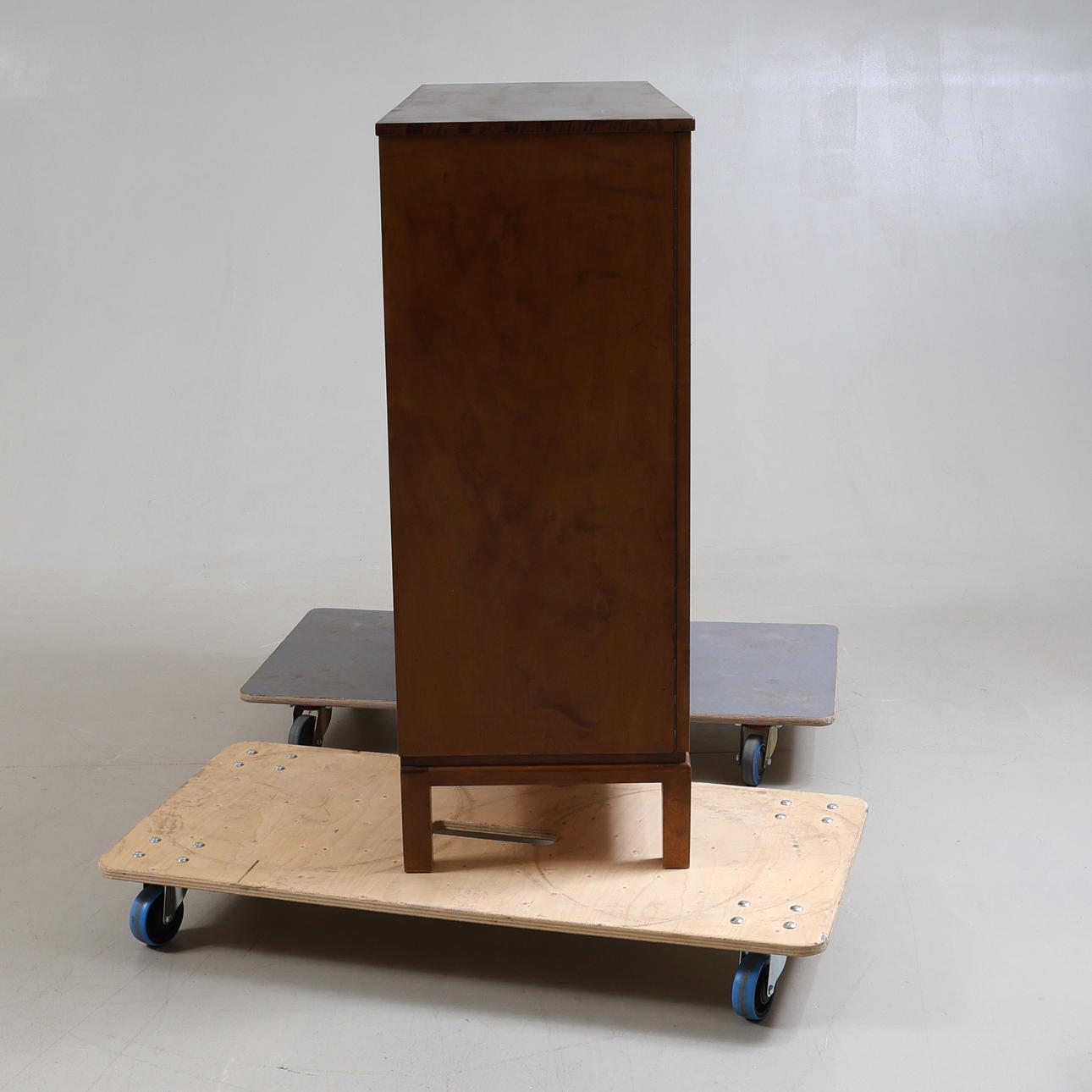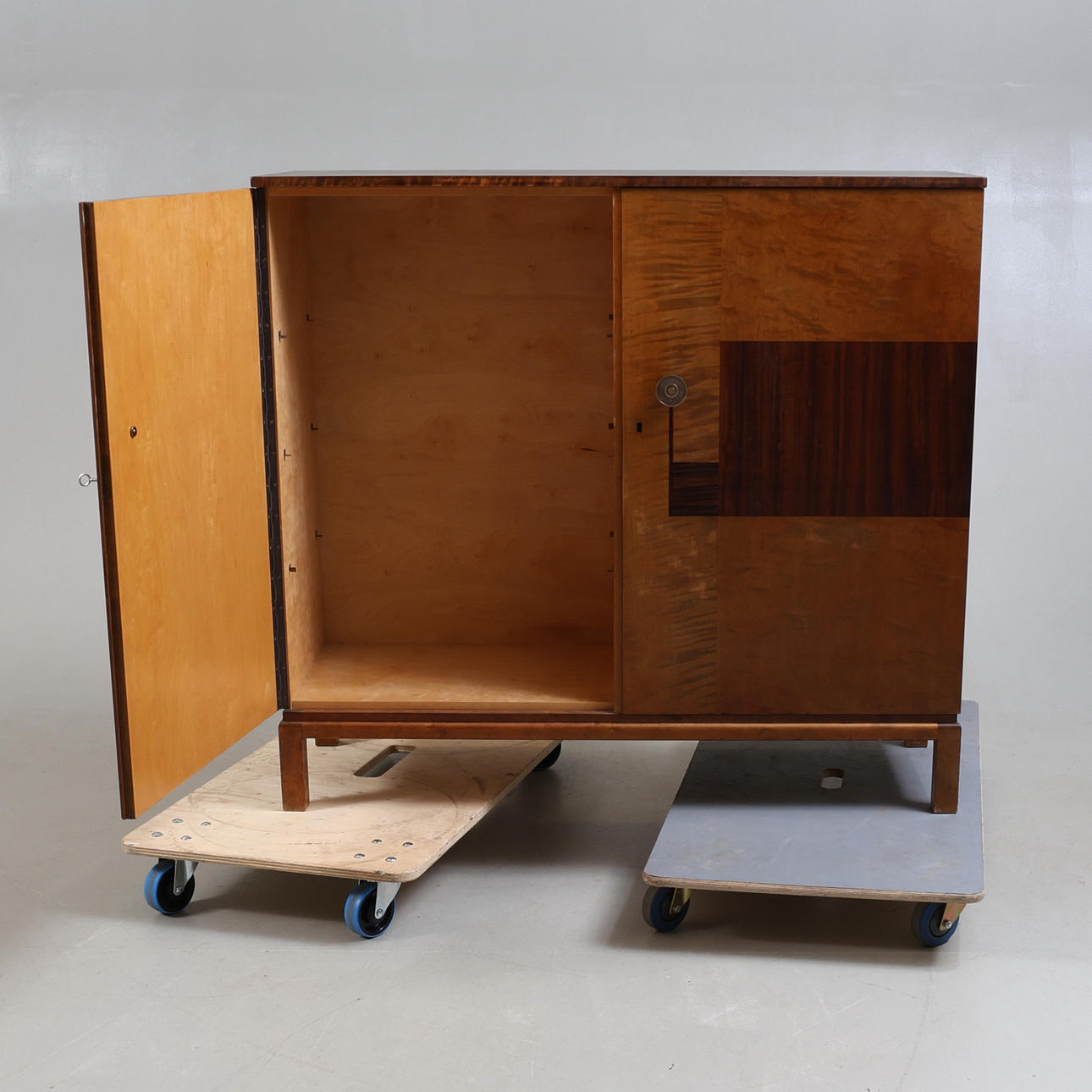 Veneered in various types of wood, including birch. A pair of doors with rear storage.
