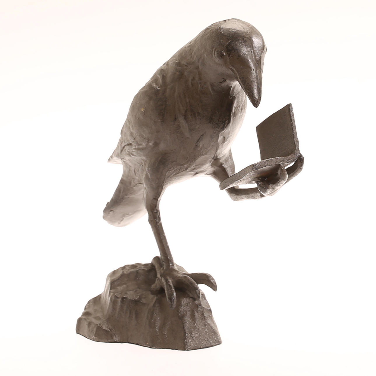 4448989. SCULPTURE, reading bird, cast iron, contemporary.