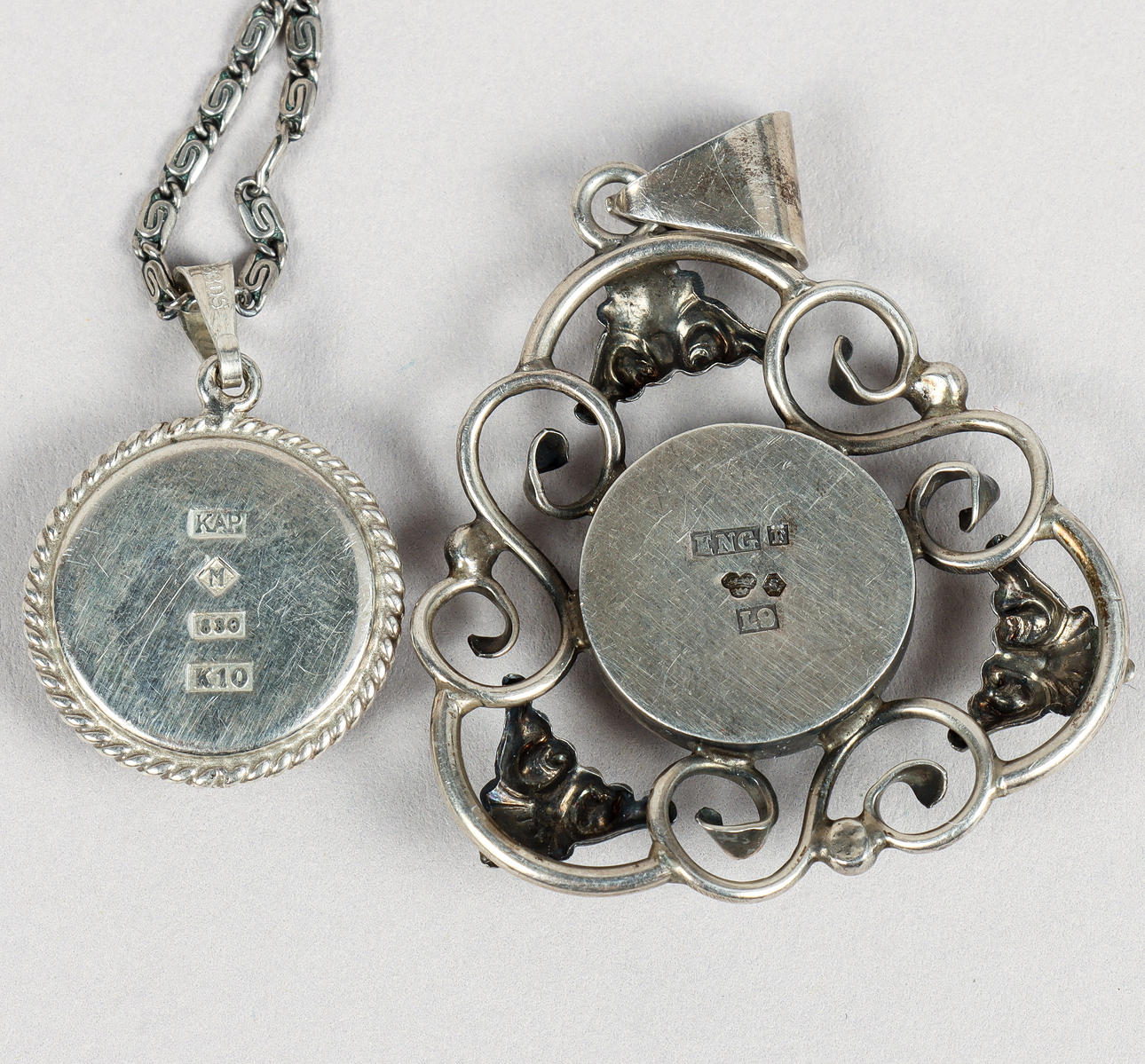 One with chain. The smallest from Älvdalssilver Ab 1984, diameter approx. 17 mm.