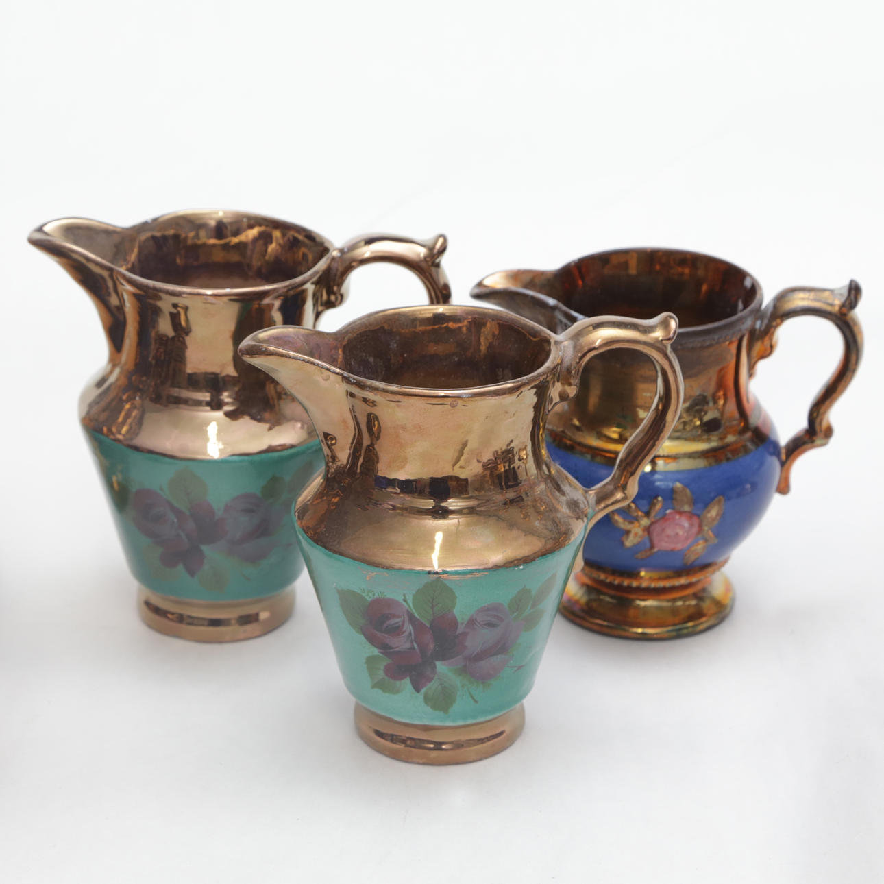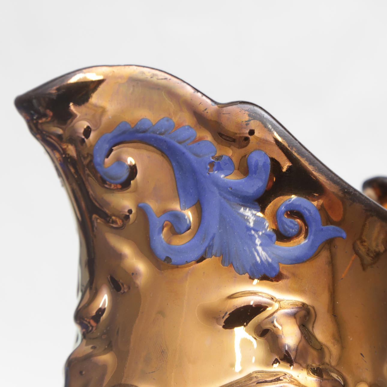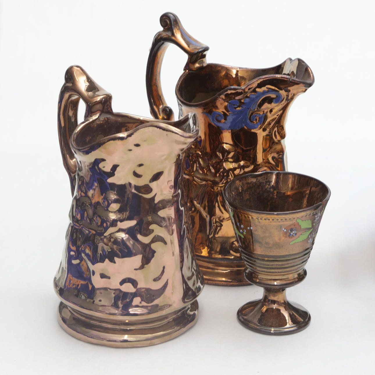 A set of 6 ceramic objects, cobalt/luster ceramics, 19th century.