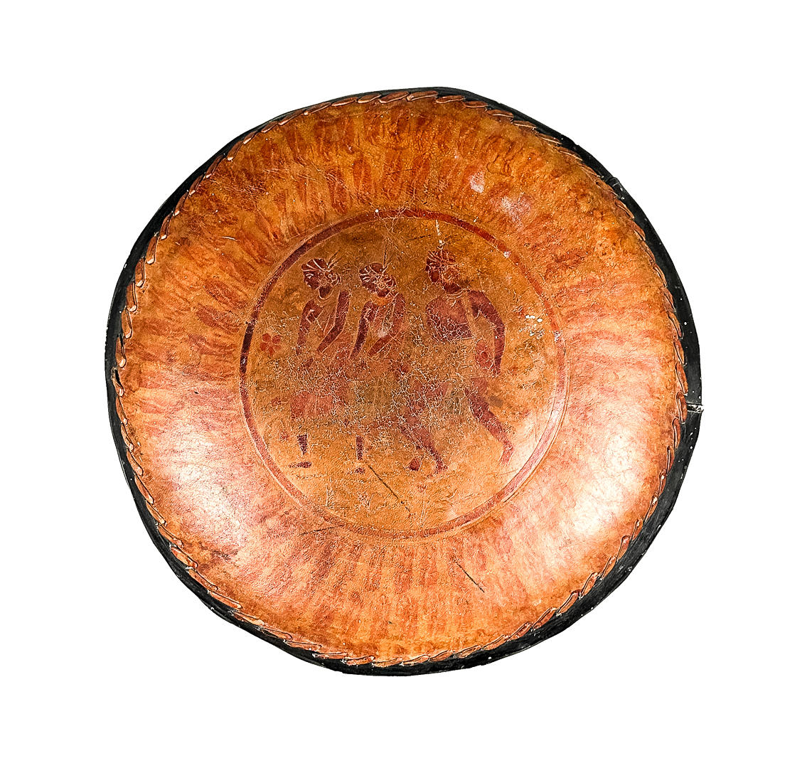 A stool, rattan, leather, oriental, 20th century.