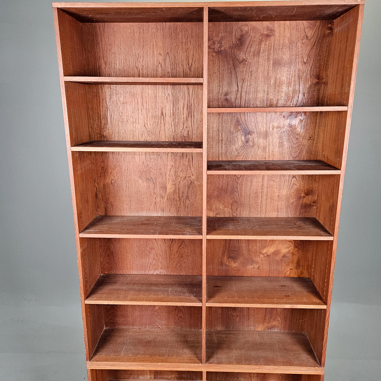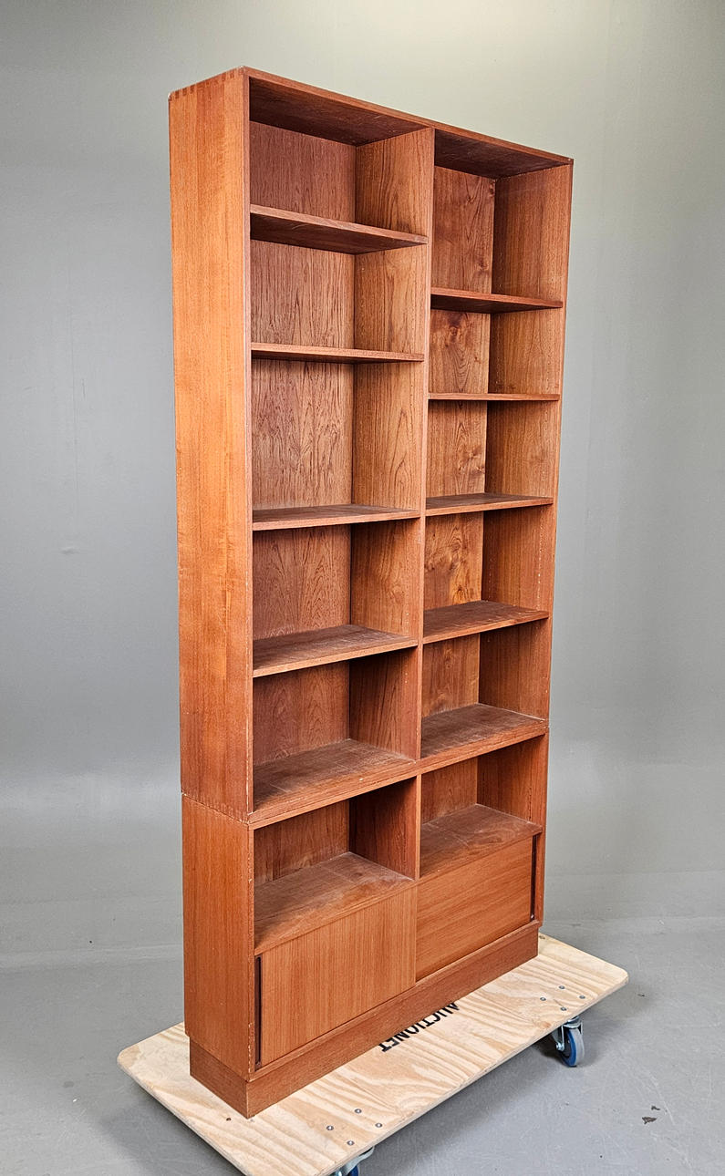 Teak, 2 split, bottom with sliding doors. Length approx. 100, width 23, height 204 cm.