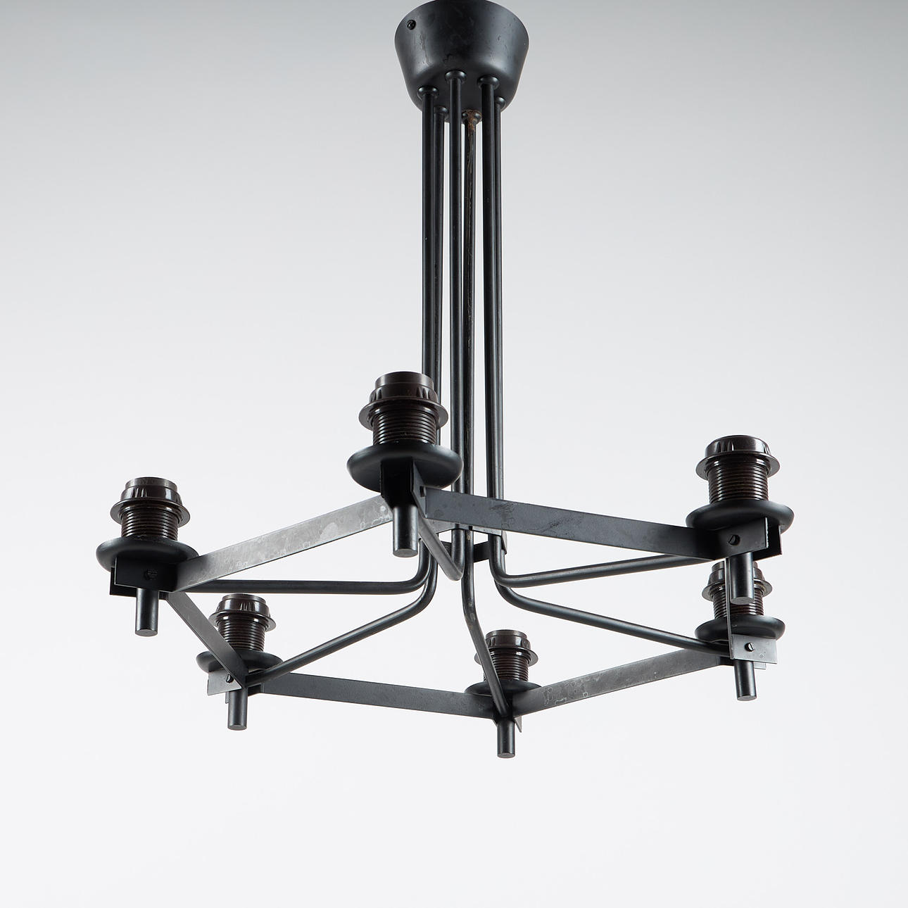 Painted metal, 6 light points. Height approx. 58 cm, diameter 55 cm.