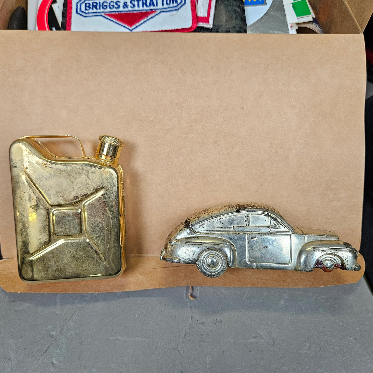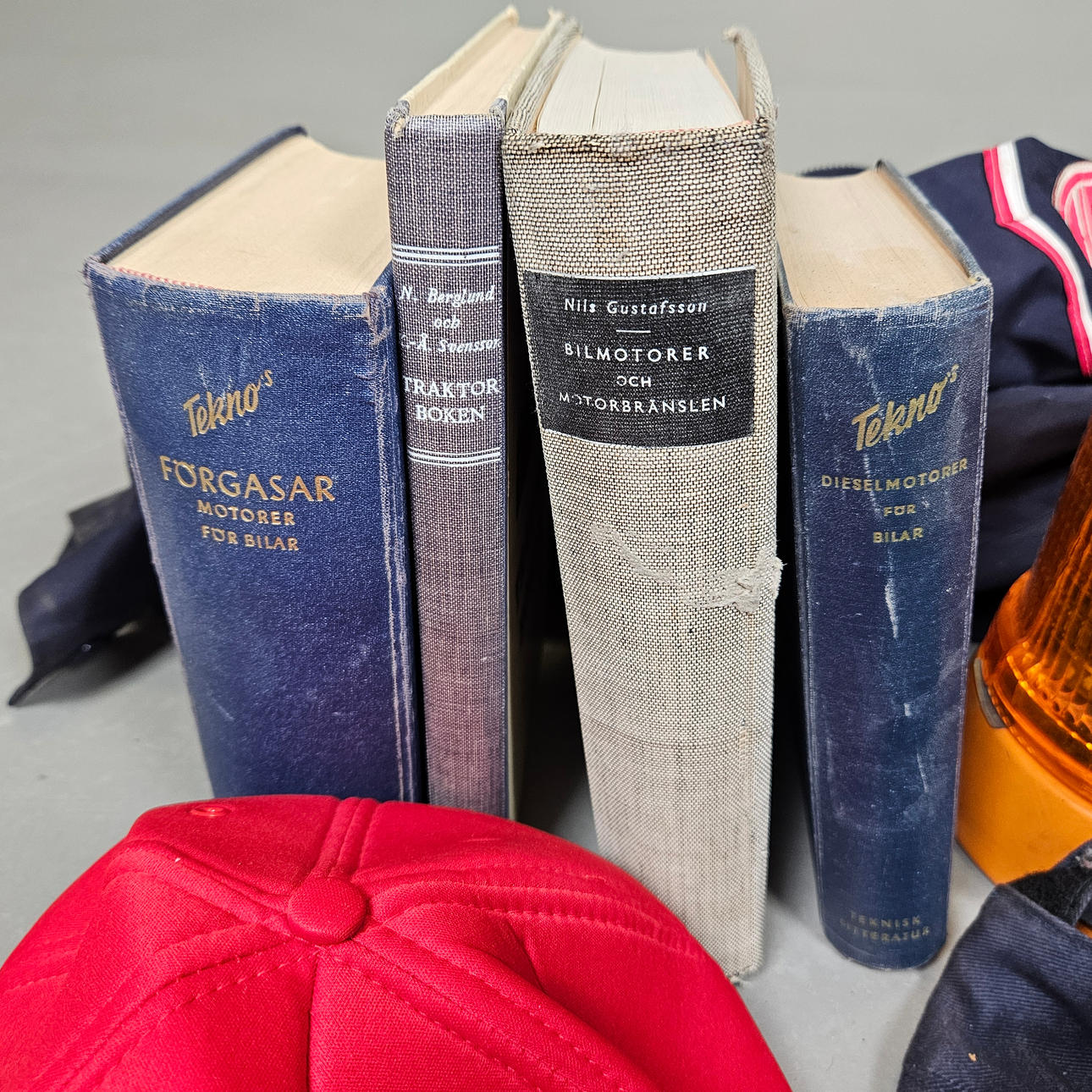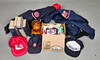 Caps, wallet, cloth and stickers, siren, belt buckle, books and more.
