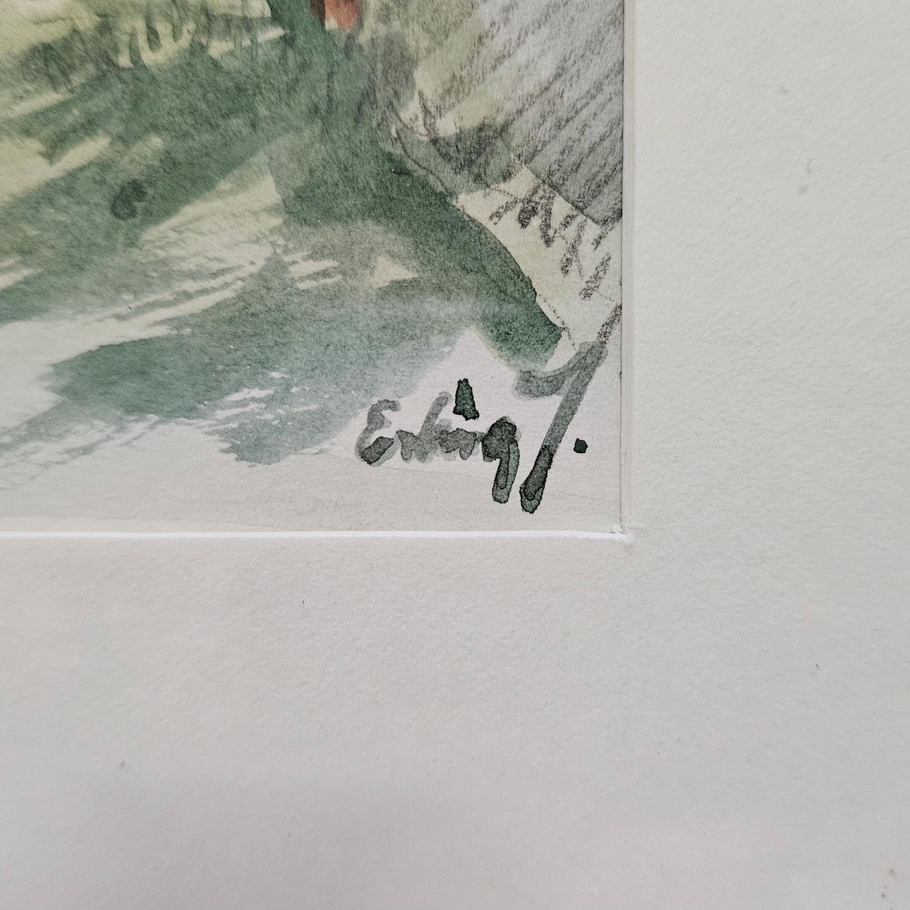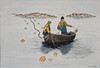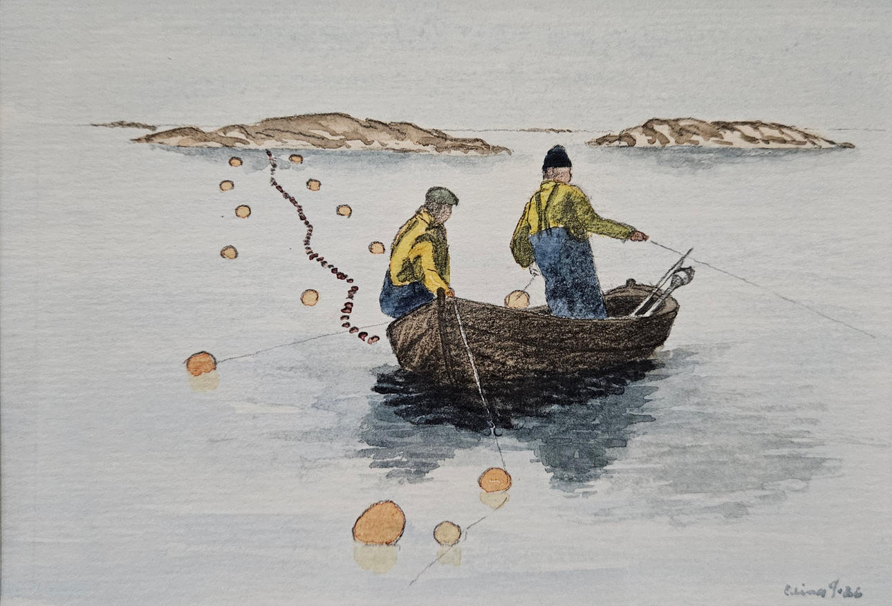 “Eel fishing V”, watercolour and pencil, picture size approx. 13x18,5 cm, wooden frame, approx. 24x29 cm.