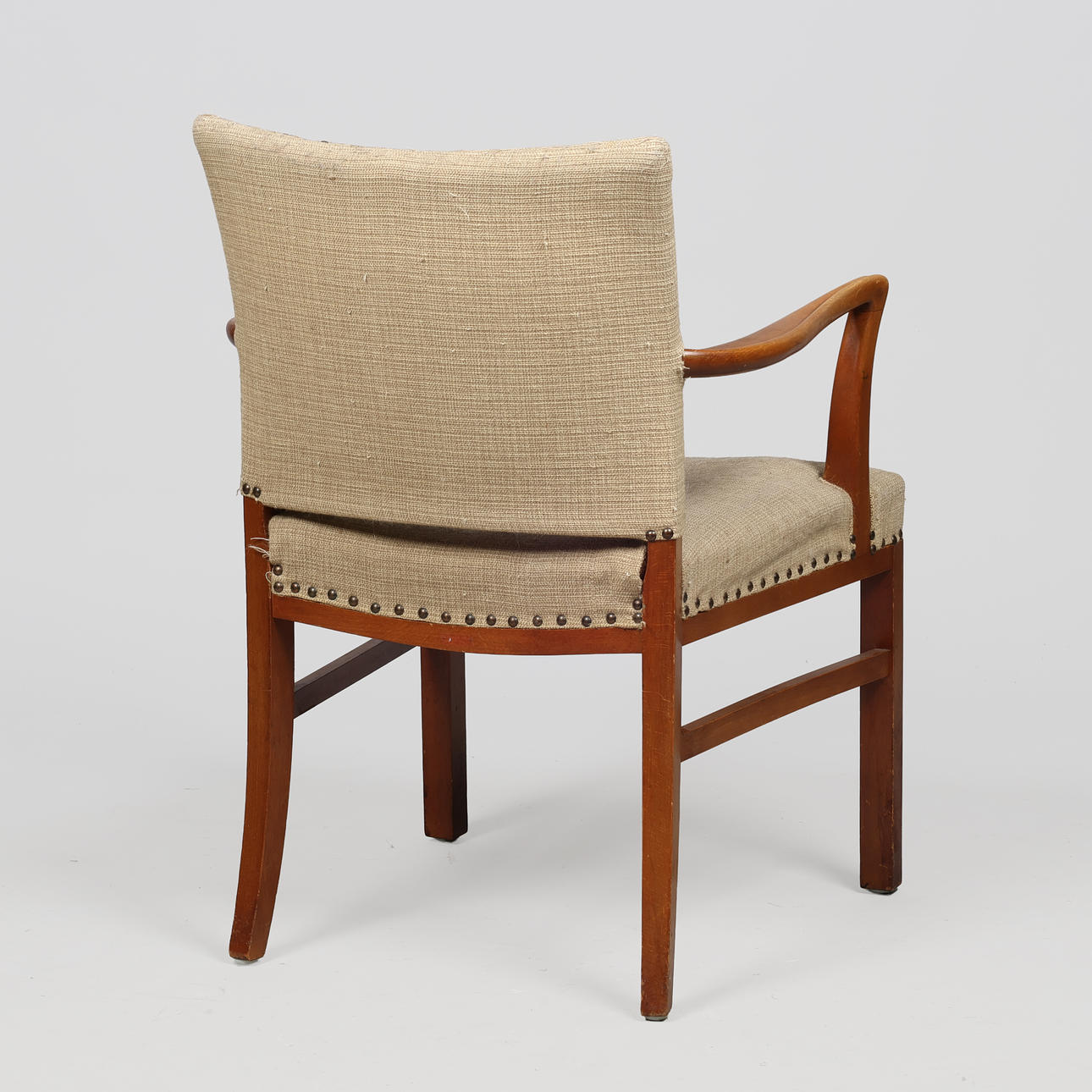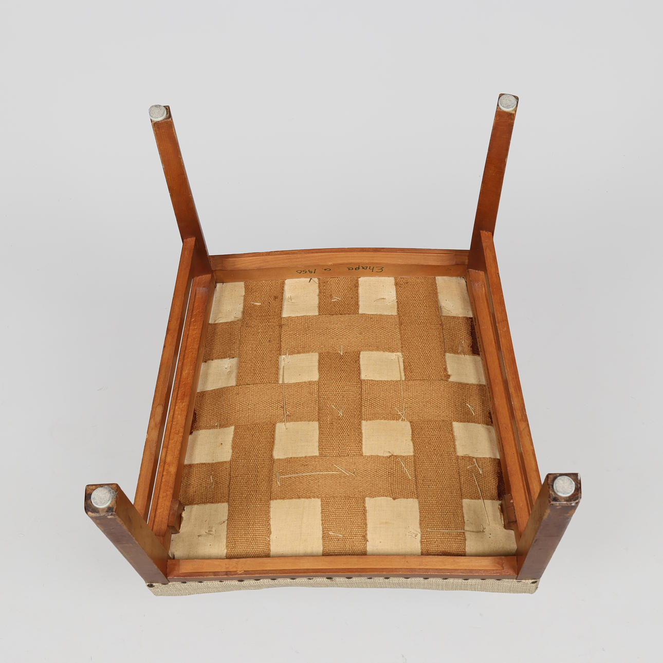 Probably made by a Danish cabinetmaker in the 1930/40s. Under the seat is handwritten with green marker: “Guest chair from Sygekassen Odense's building - Ehapa c. 1950".