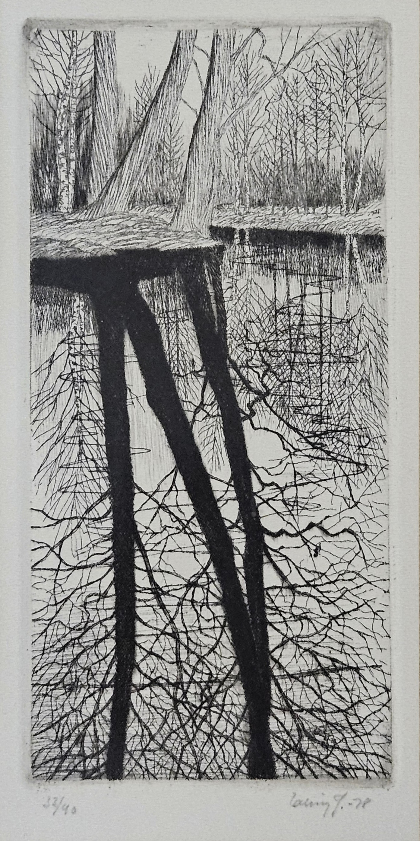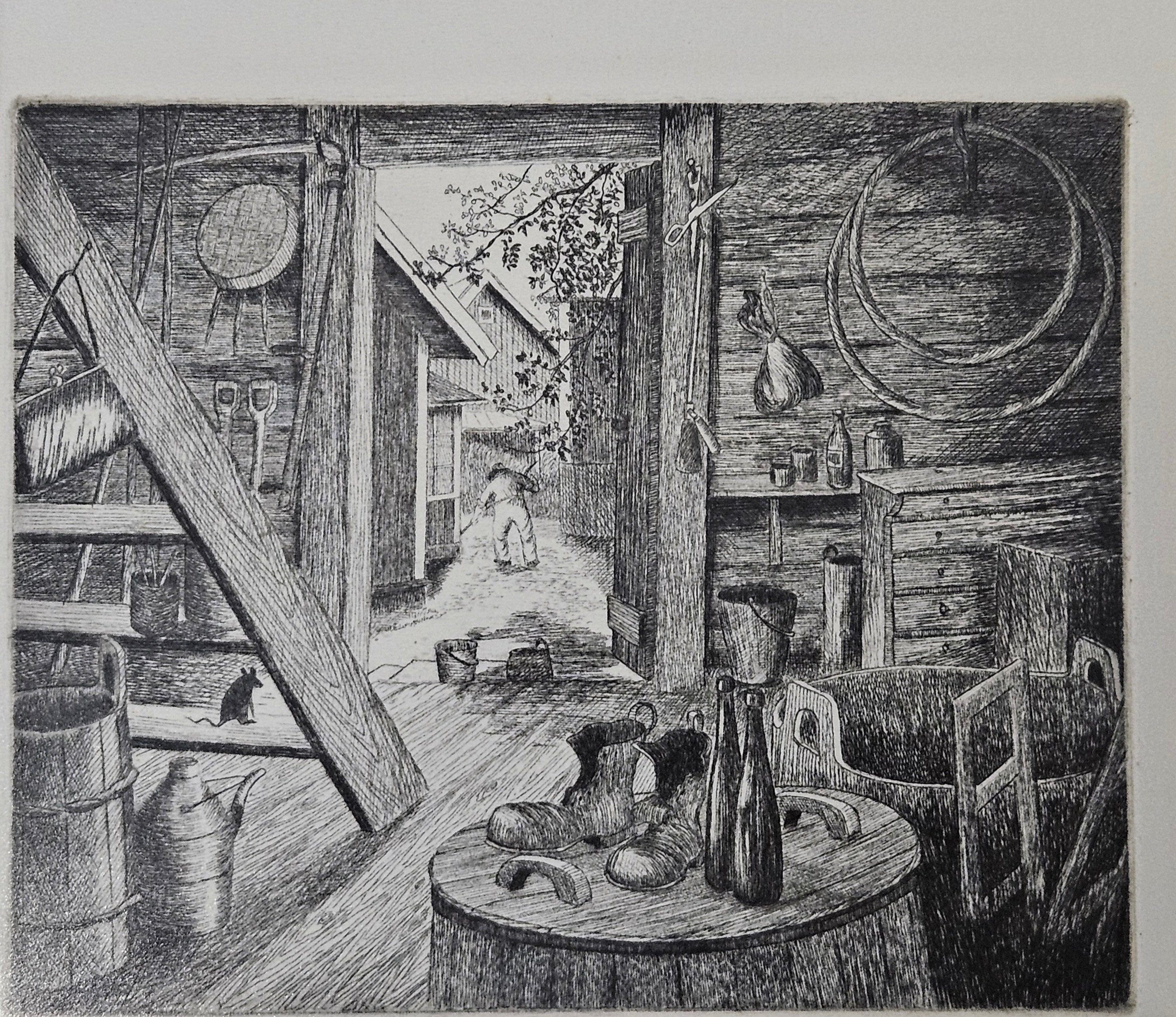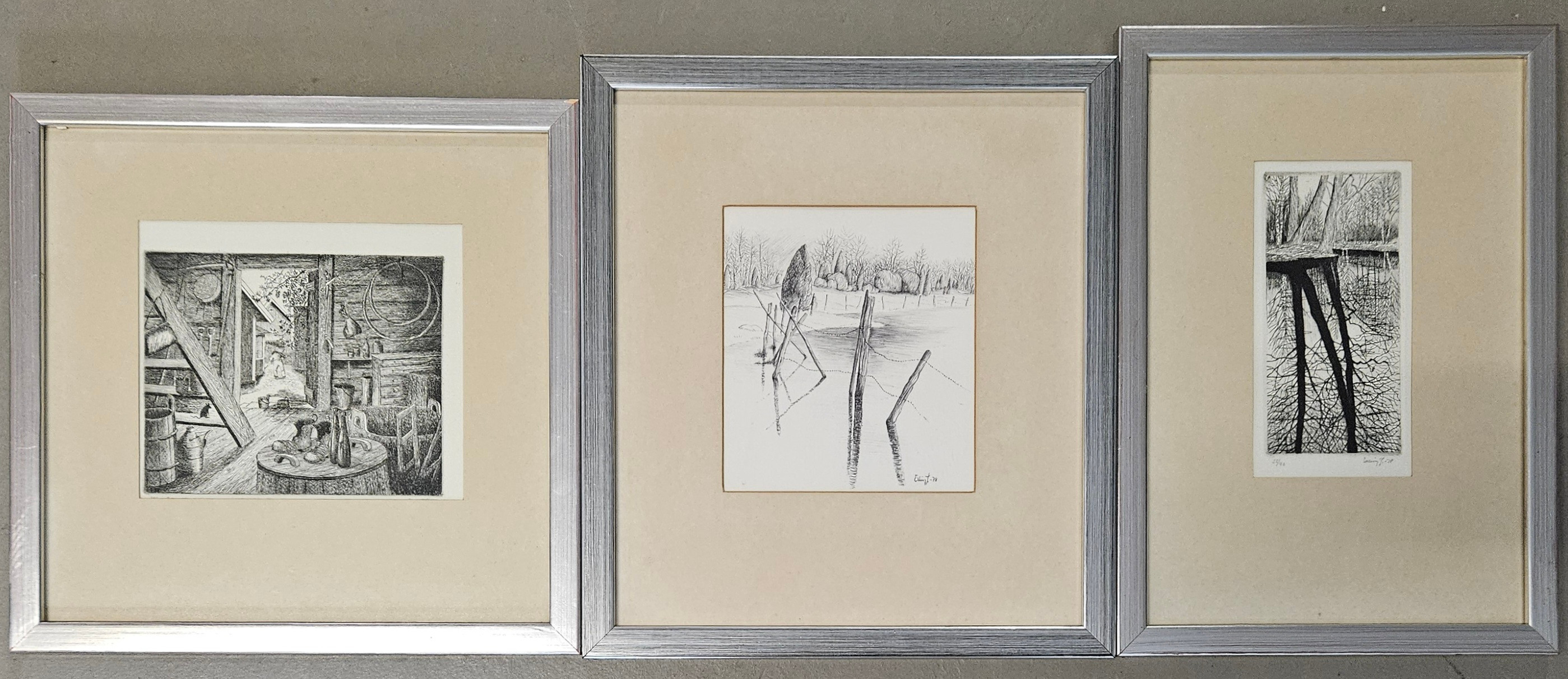 4450335. ERLING JOHANSSON. Etchings, 2 pieces and drawing, signed.