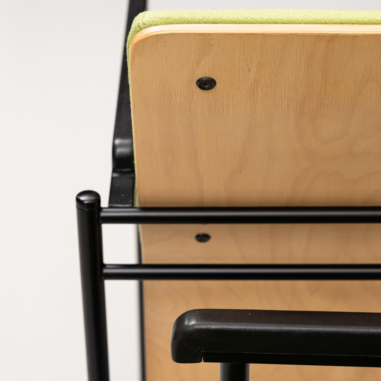 Black steel tubes, green upholstered seat and back washer. Seat height 44, width 55 cm.