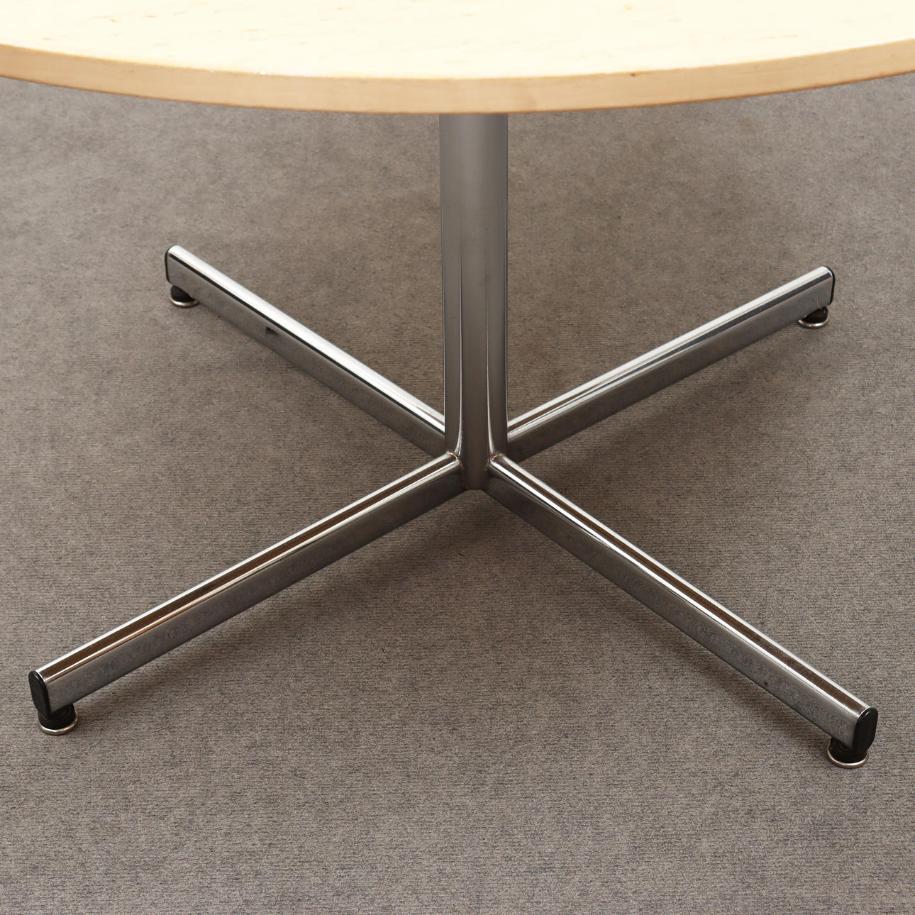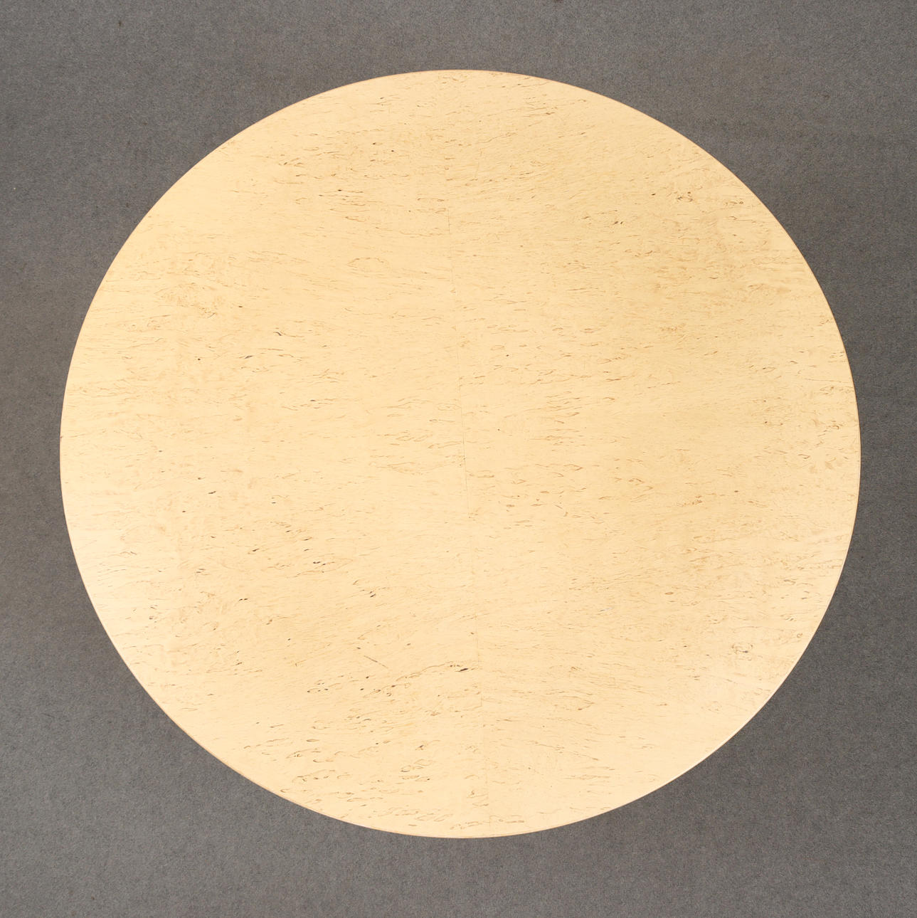 4451528. DINING TABLE IN MASUR BIRCH WITH CHROMED STAND.