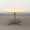 DINING TABLE IN MASUR BIRCH WITH CHROMED STAND.
