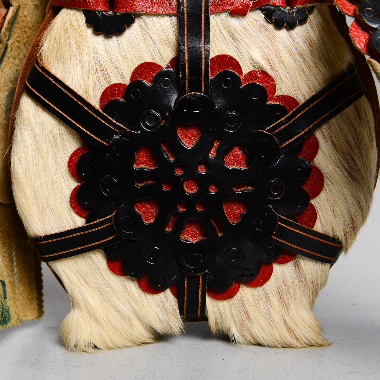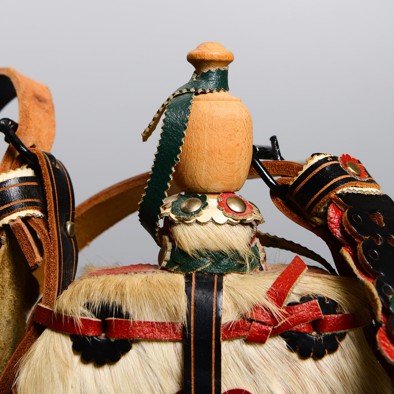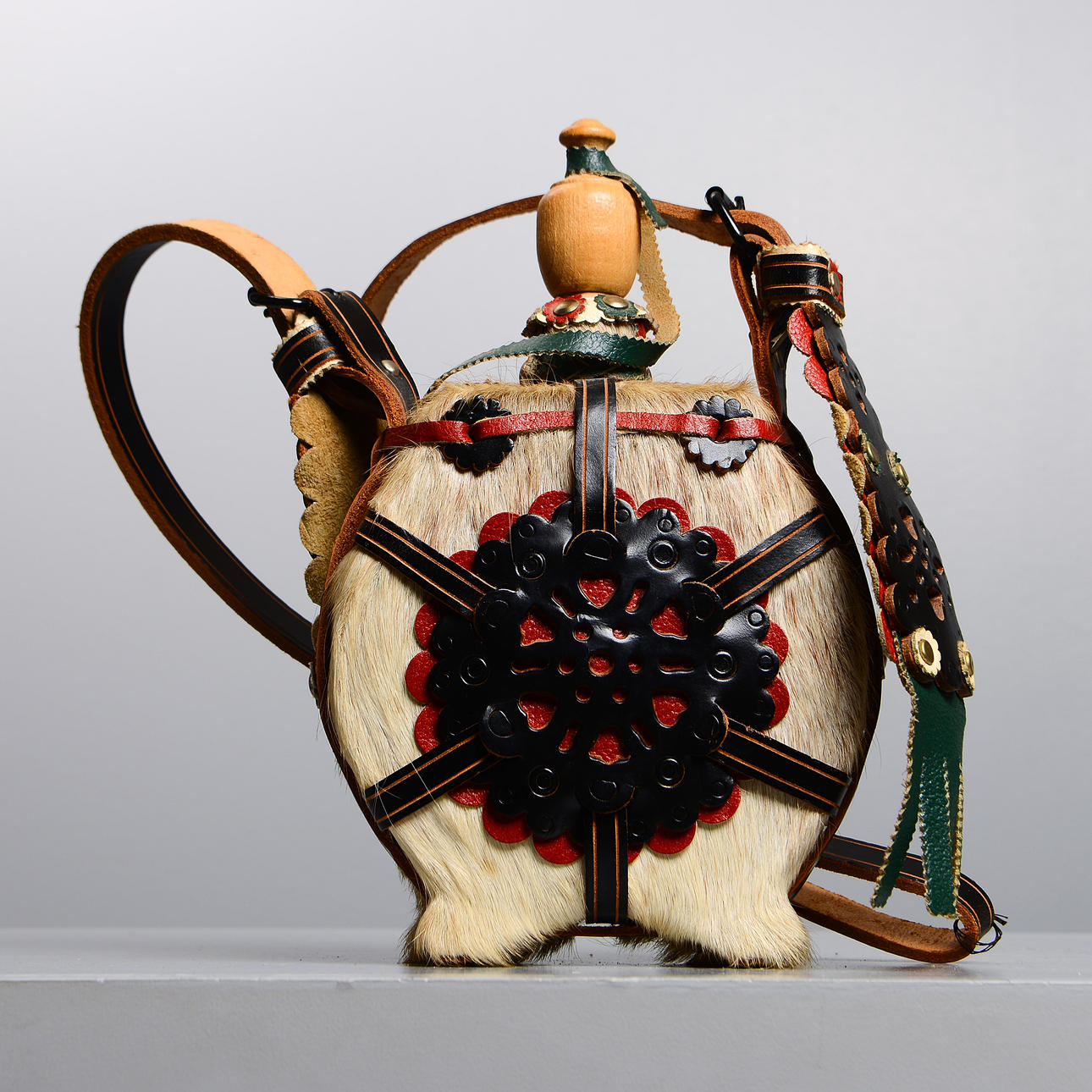Leather and wood. Bottle dressed in horsehair. Height 28,5 cm.
