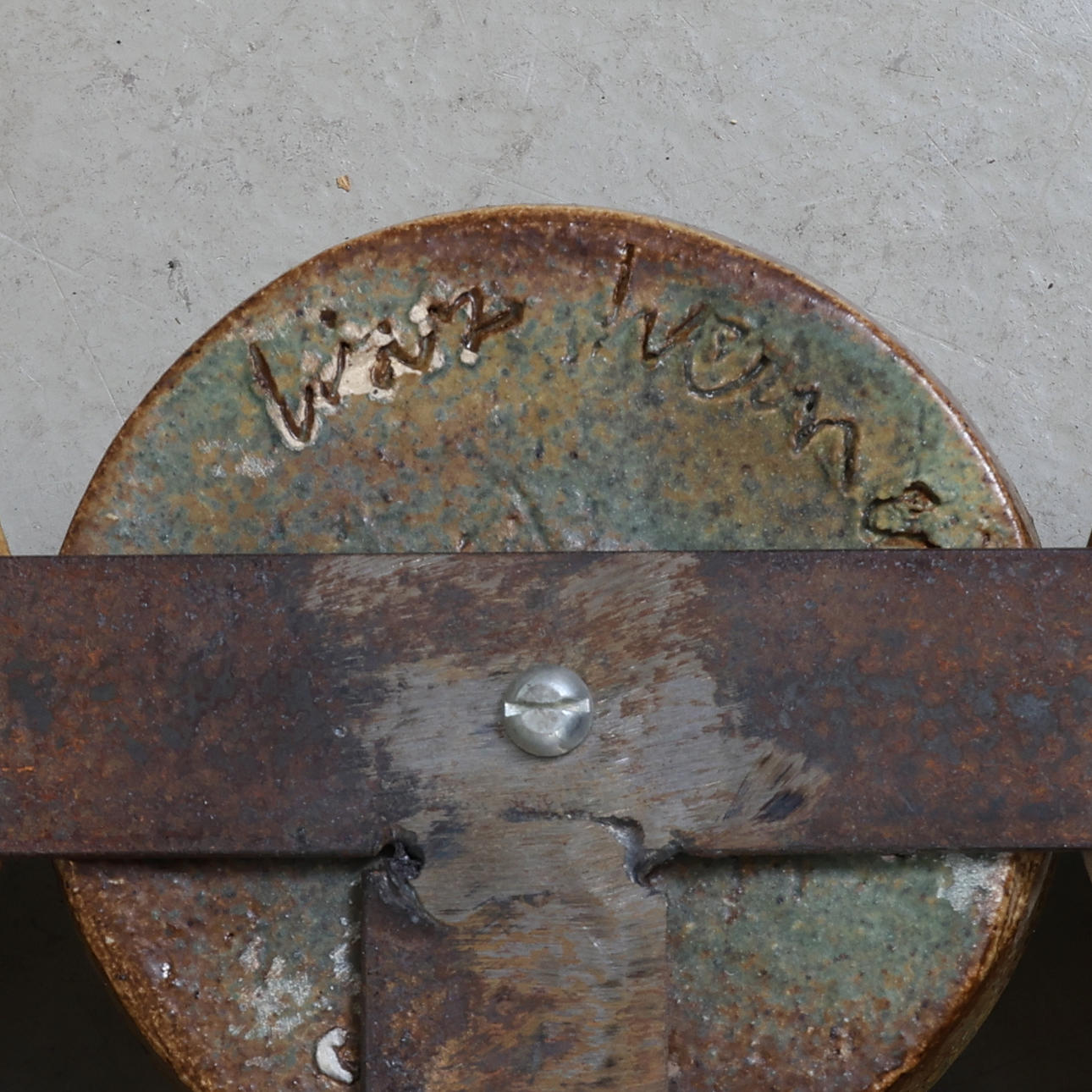 OIDENTIFIERAD KONSTNÄR. A wall sculpture, signed, stoneware and iron, 20th century.