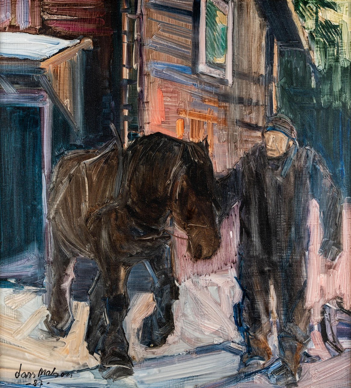 LARS MATSON. Oil on panel, “Morgon vid stallet”, 1987.