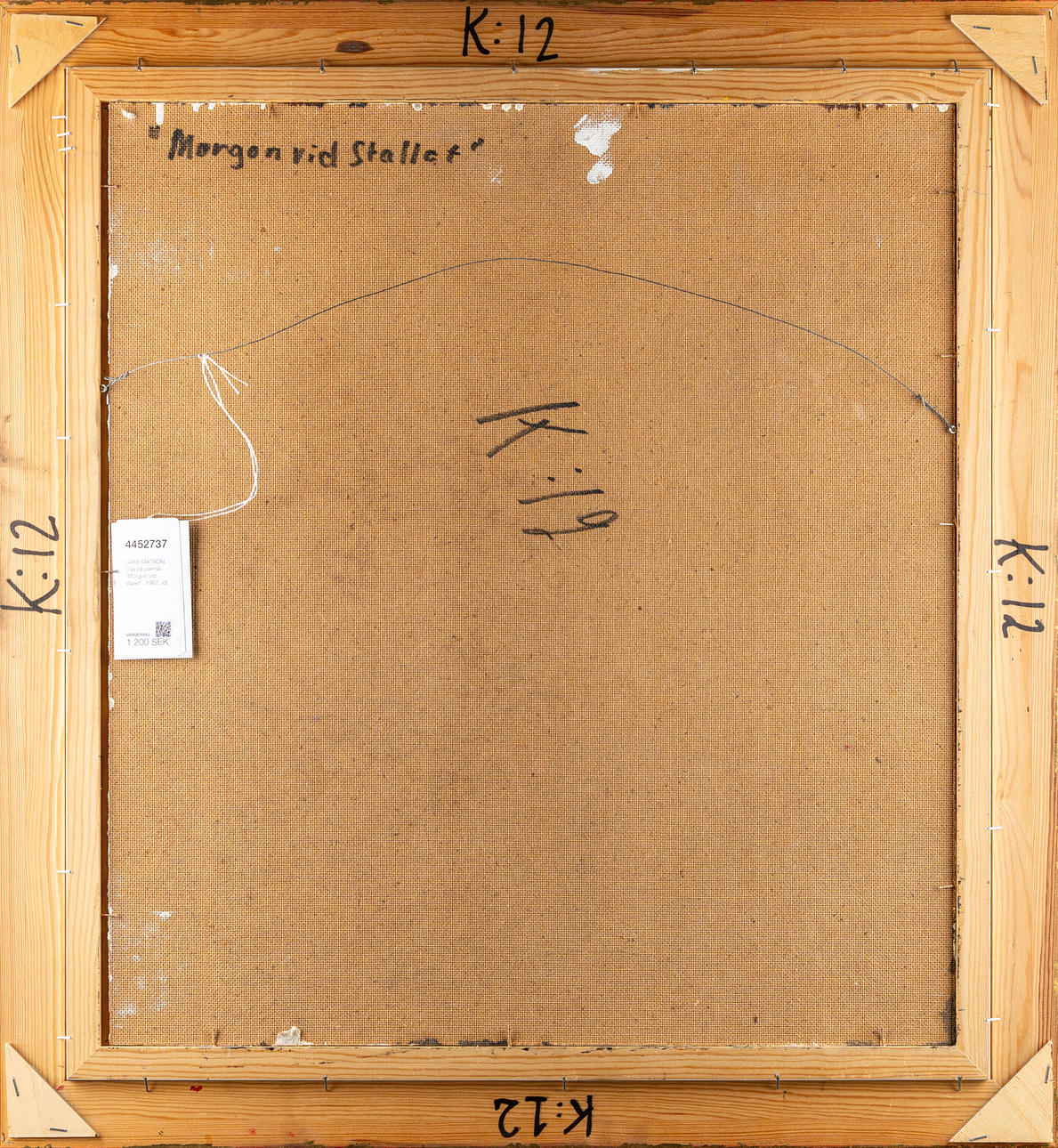 4452737. LARS MATSON. Oil on panel, “Morgon vid stallet”, 1987.