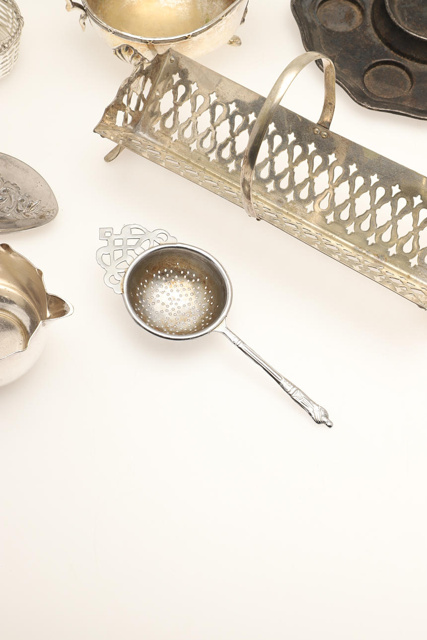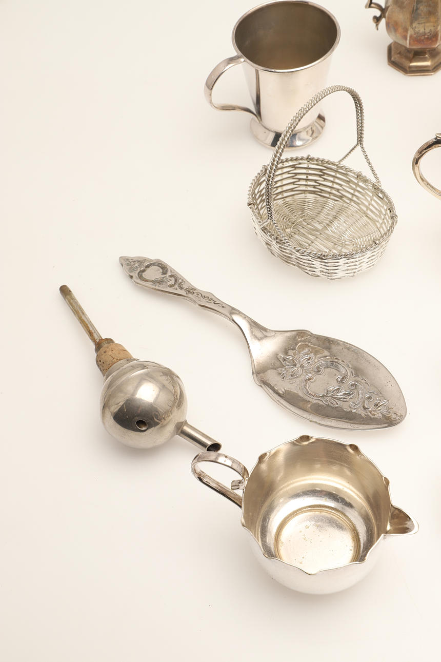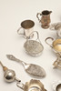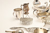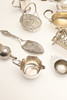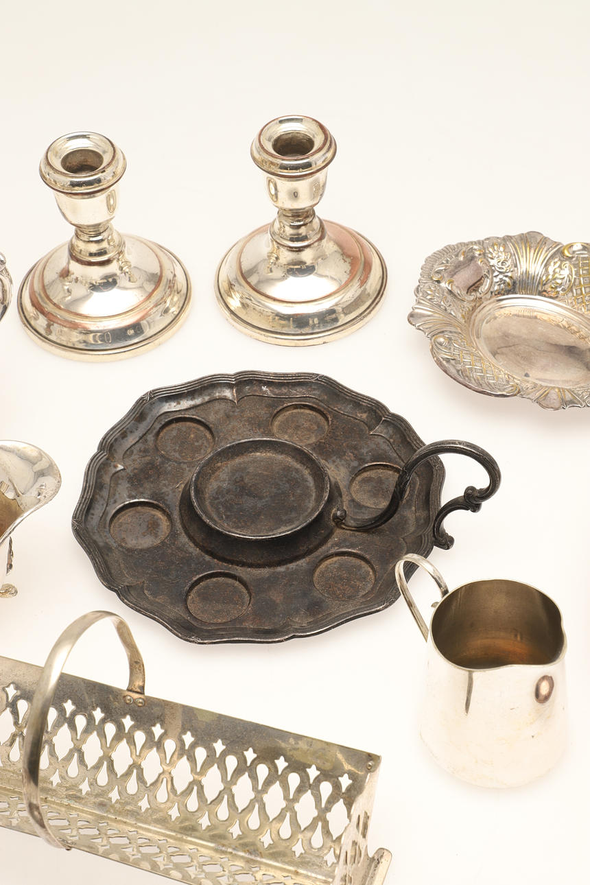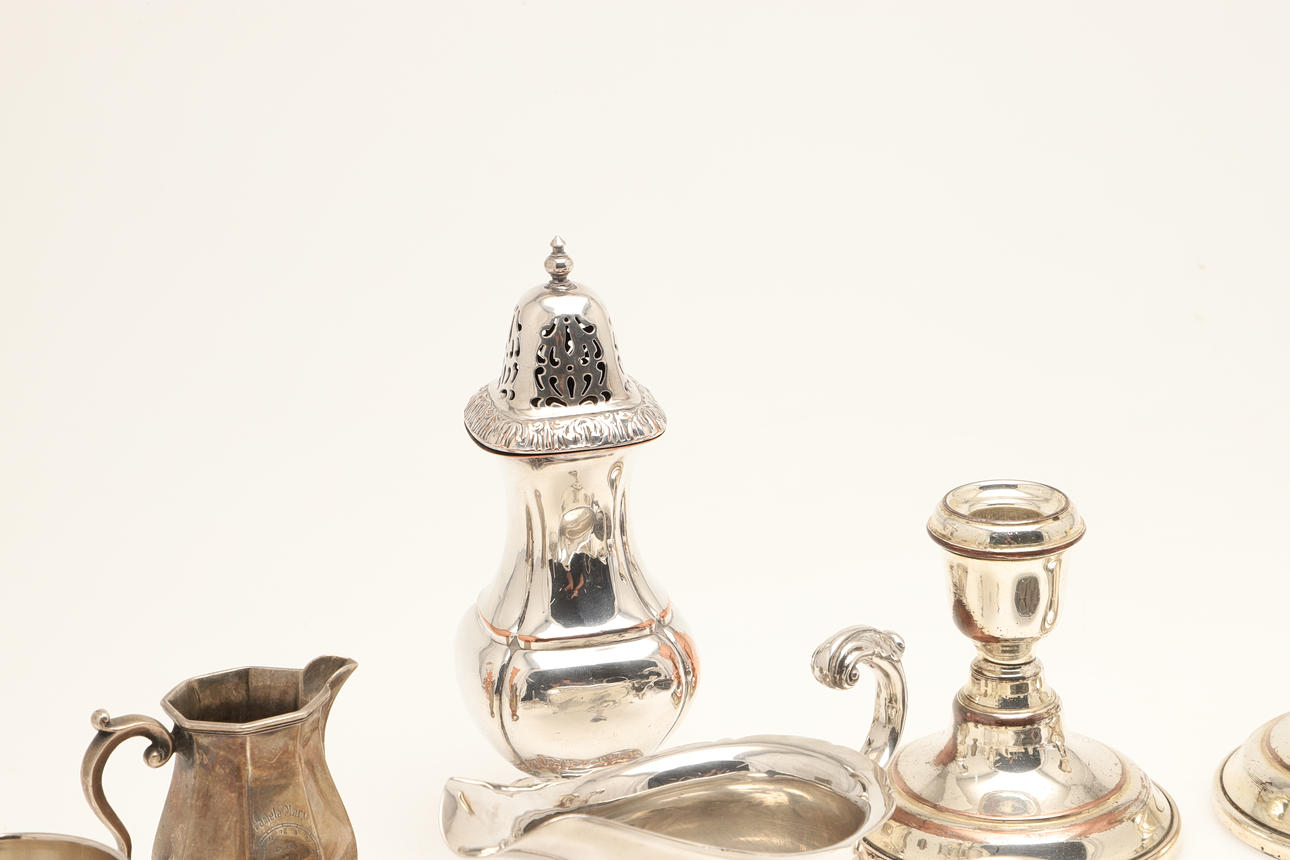 To include a pair of mini candlesticks (height 11cm), gravy boats, jugs, trays, and a sugar caster (height 18cm). (Qty).