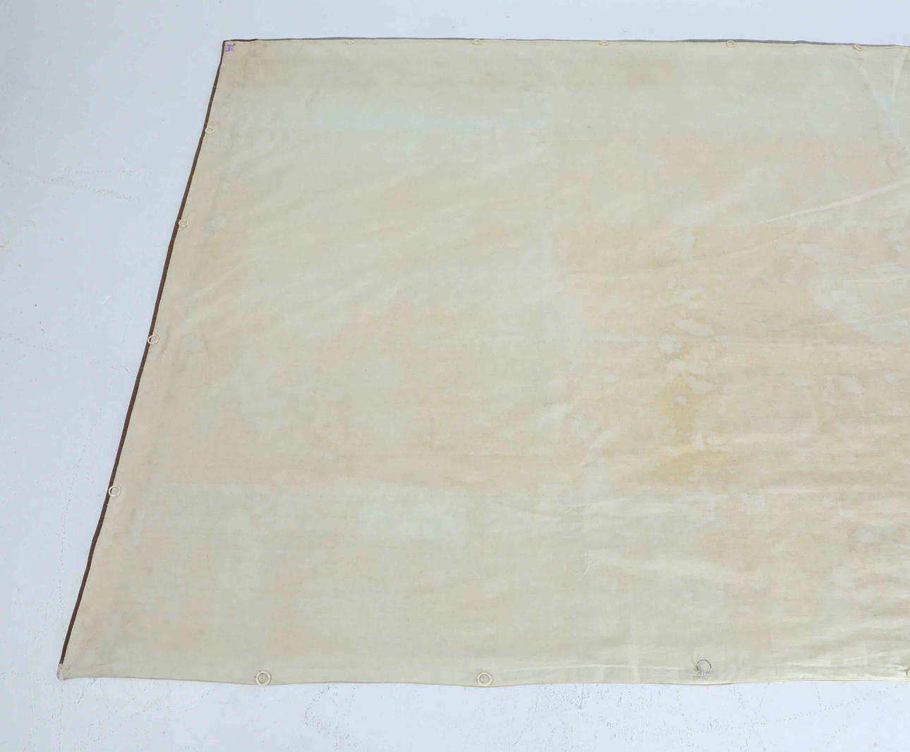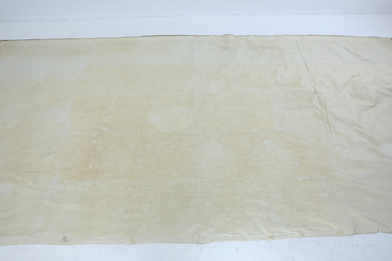 Applique with edging tape and stitching. Lined and with rear suspension rings. Size 168 x 346 cm.