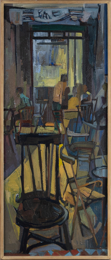 4453587. OKÄND KONSTNÄR. Oil on canvas, cafe interior.