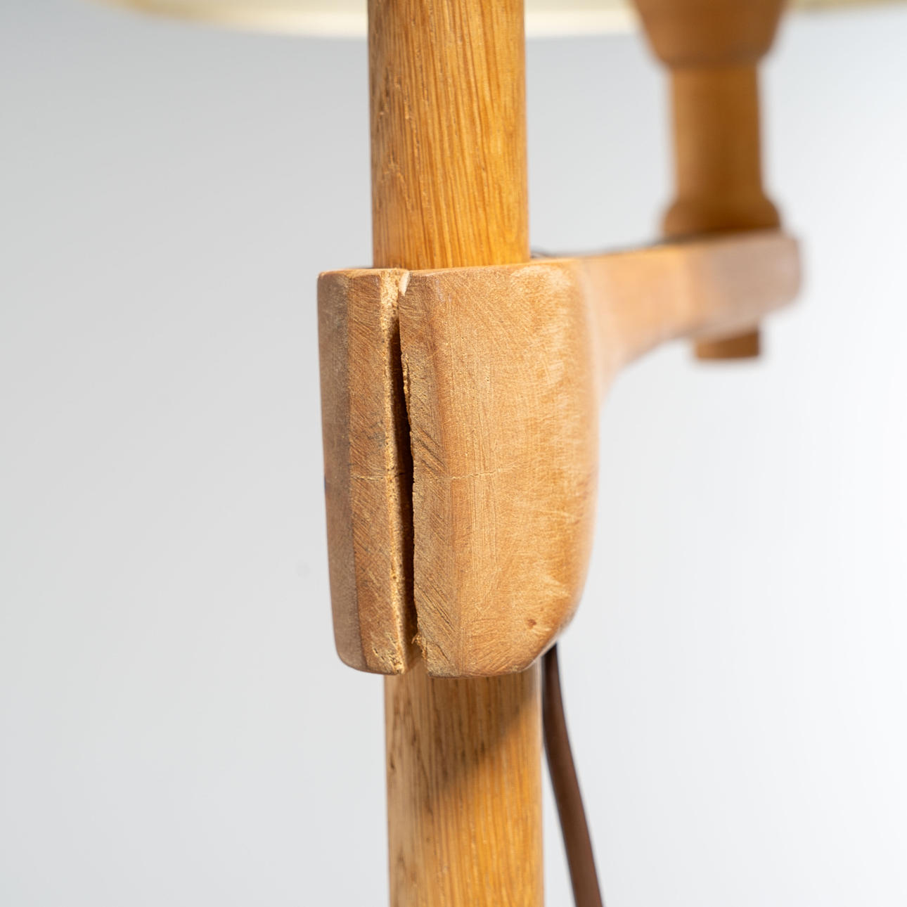 Floor lamp in pine with height-adjustable shade. Branded: CM