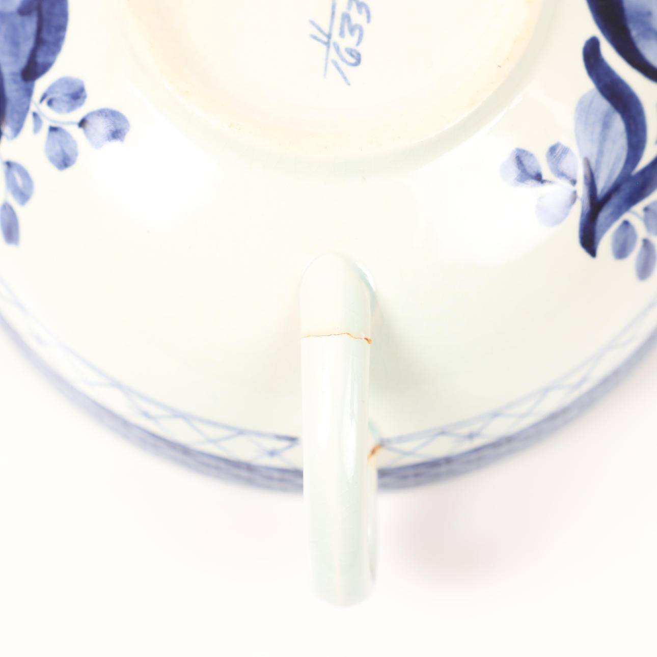 Minor wear and tear, cracking, some parts with slight discoloration, chips on 1 sauce bowl, 2 broth cups with prepared ears.