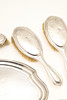 4453954. A GEORGE V FIVE PIECE SILVER BACKED DRESSING TABLE SET.