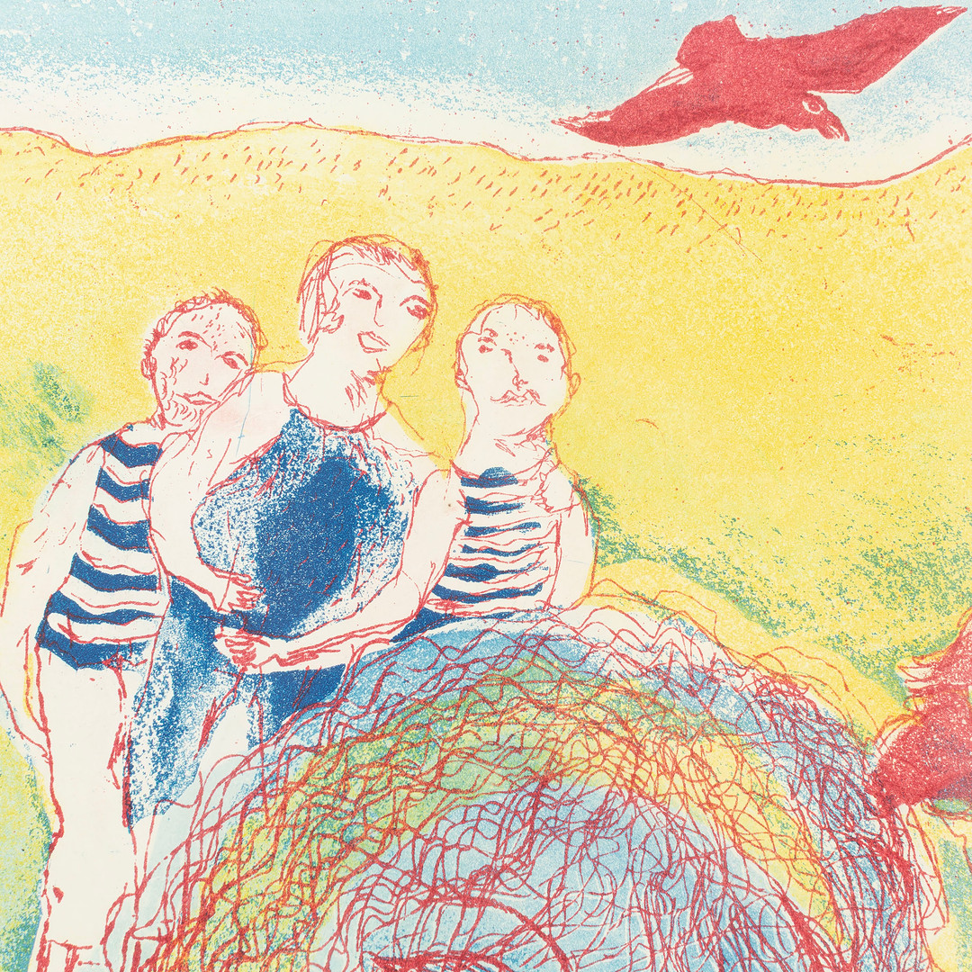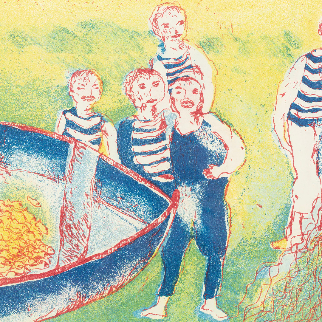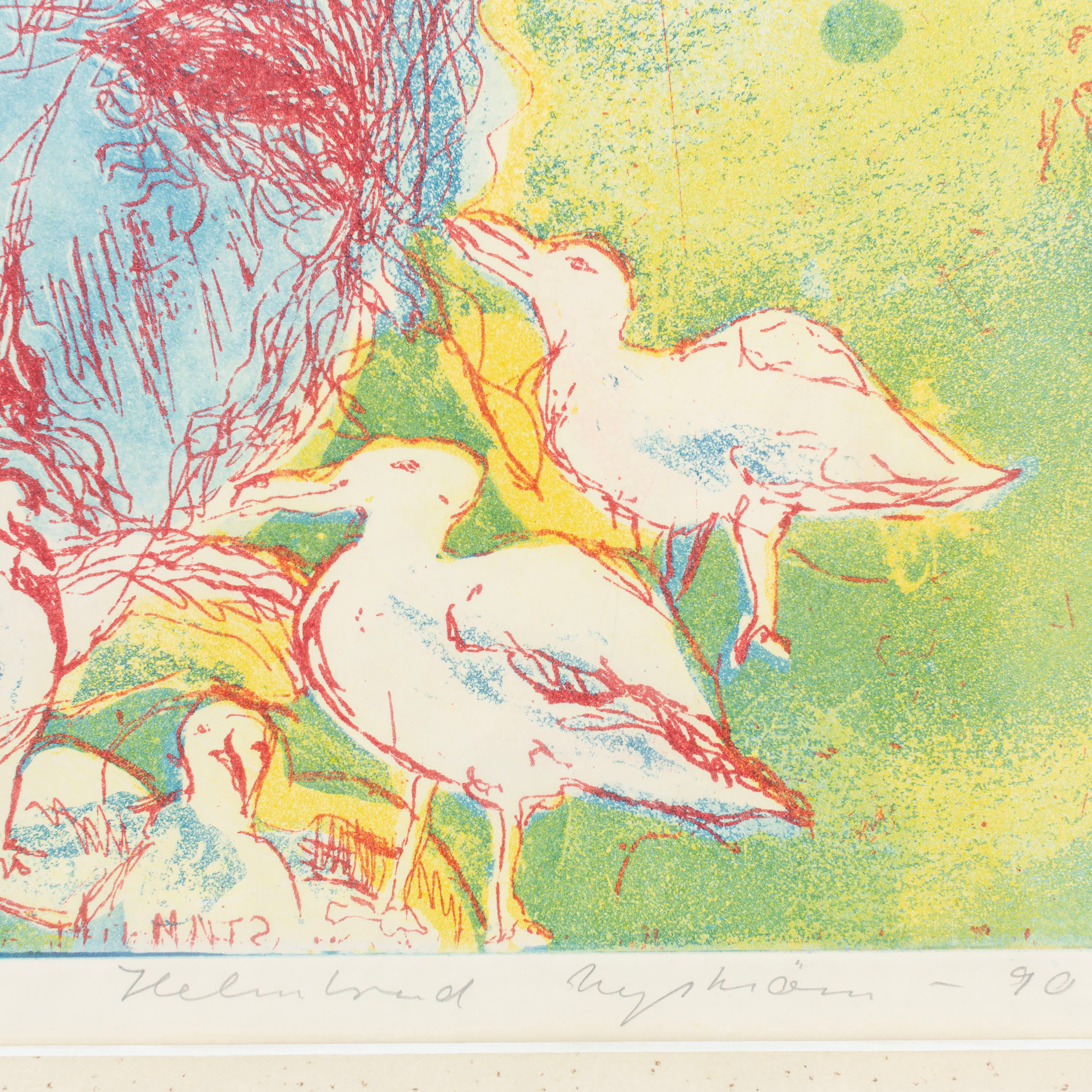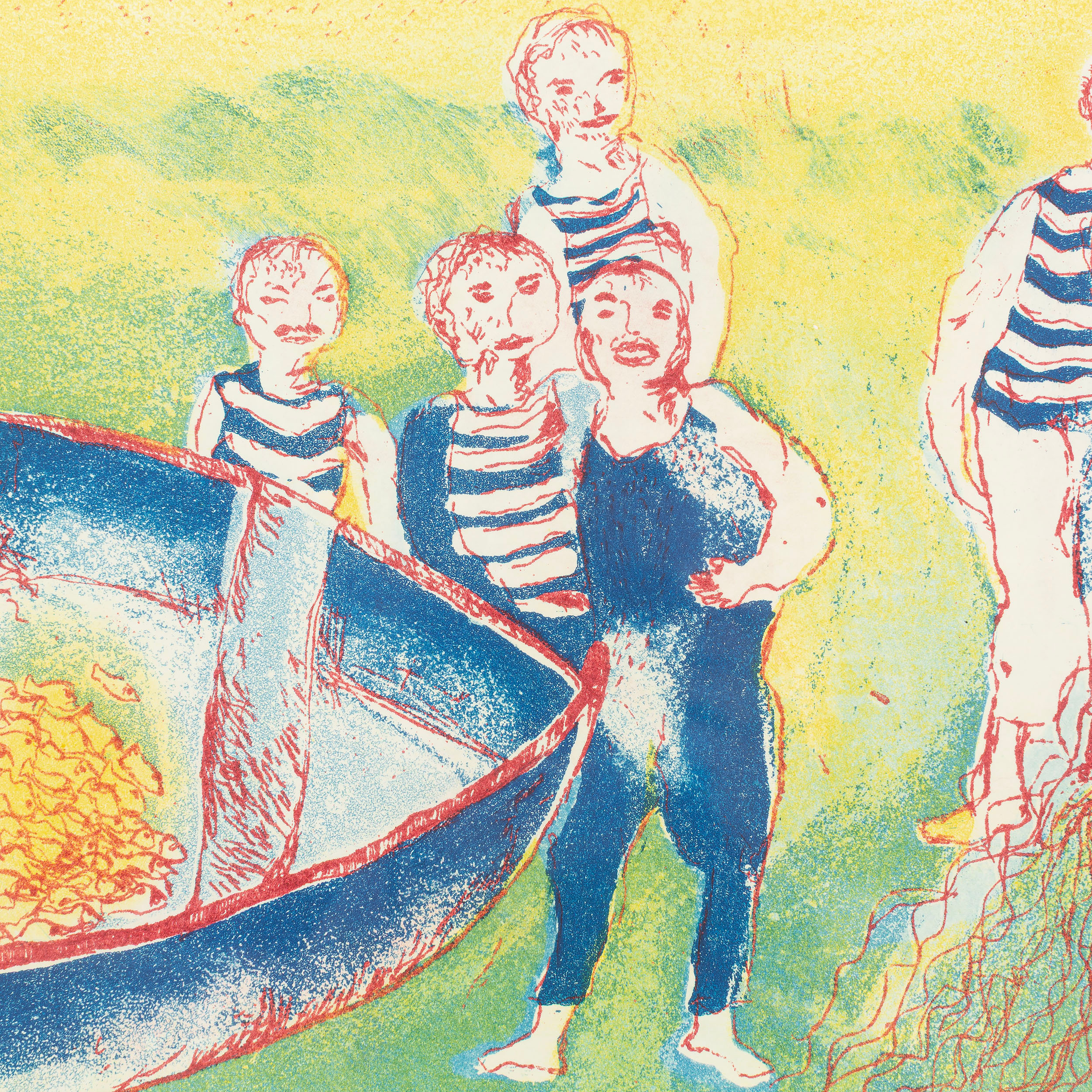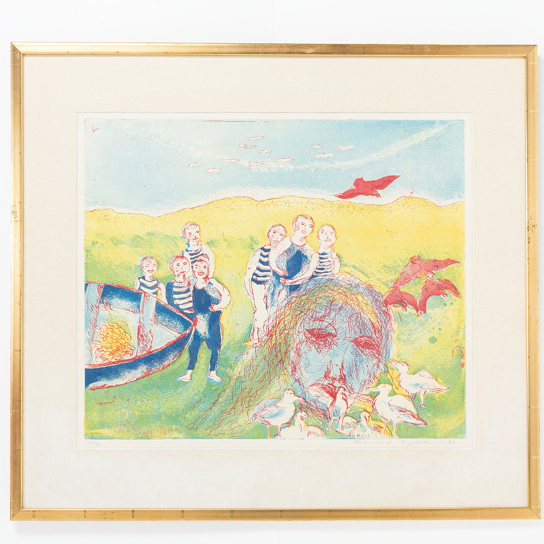 4454018. HELMTRUD NYSTROM. Fisherman, color etching, signed and numbered 24/90.