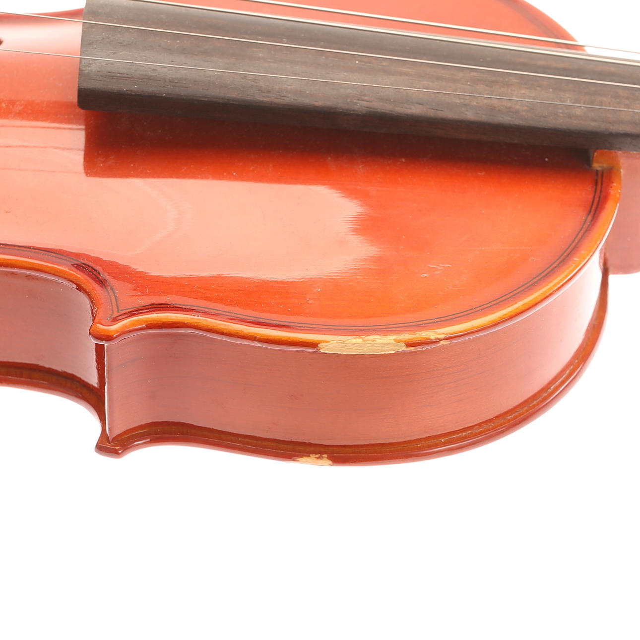 Normal wear and tear. Some abrasion on violin. Stray with injury. The case cannot be closed as the zipper does not have a drawbar.