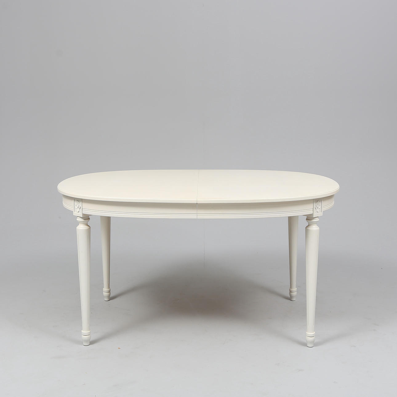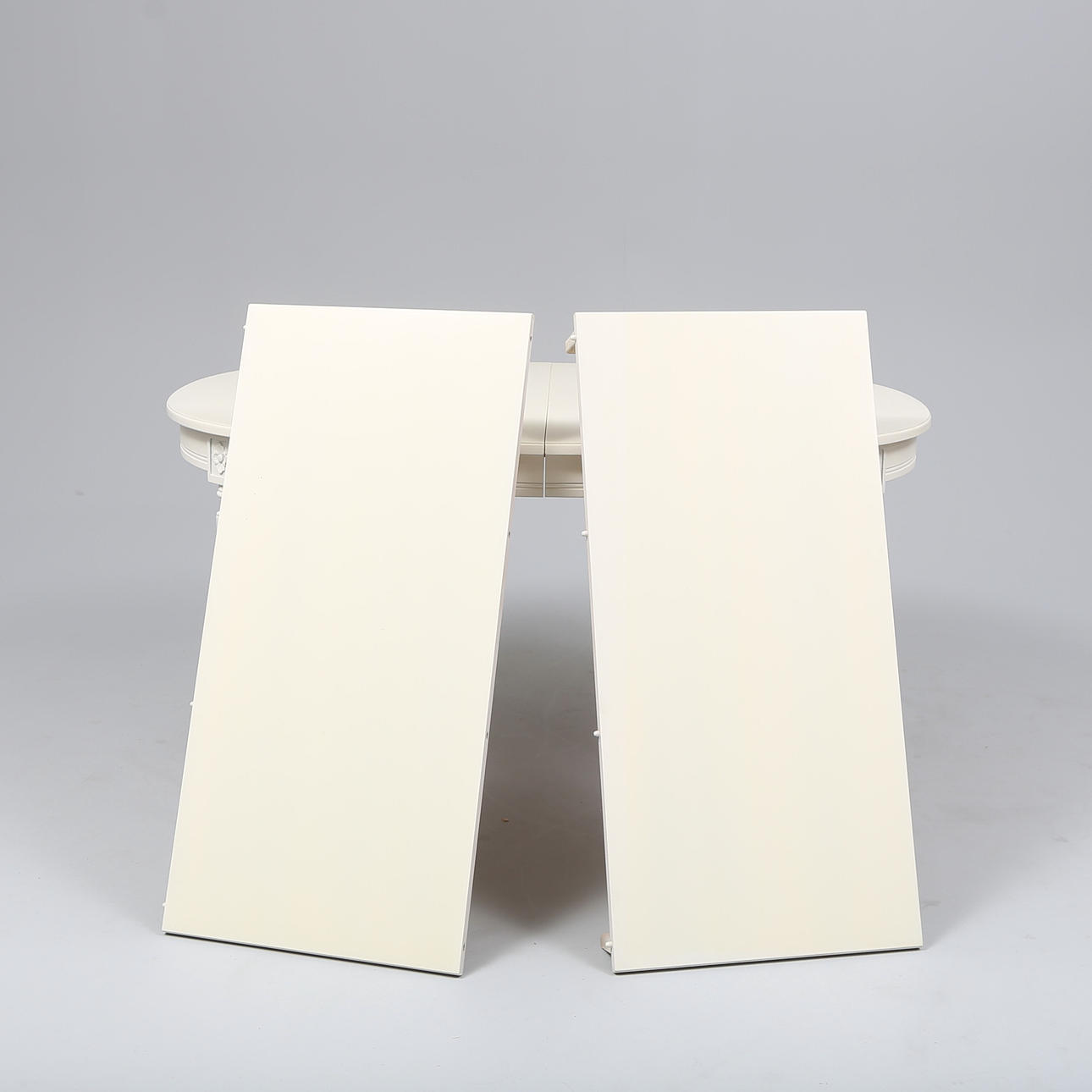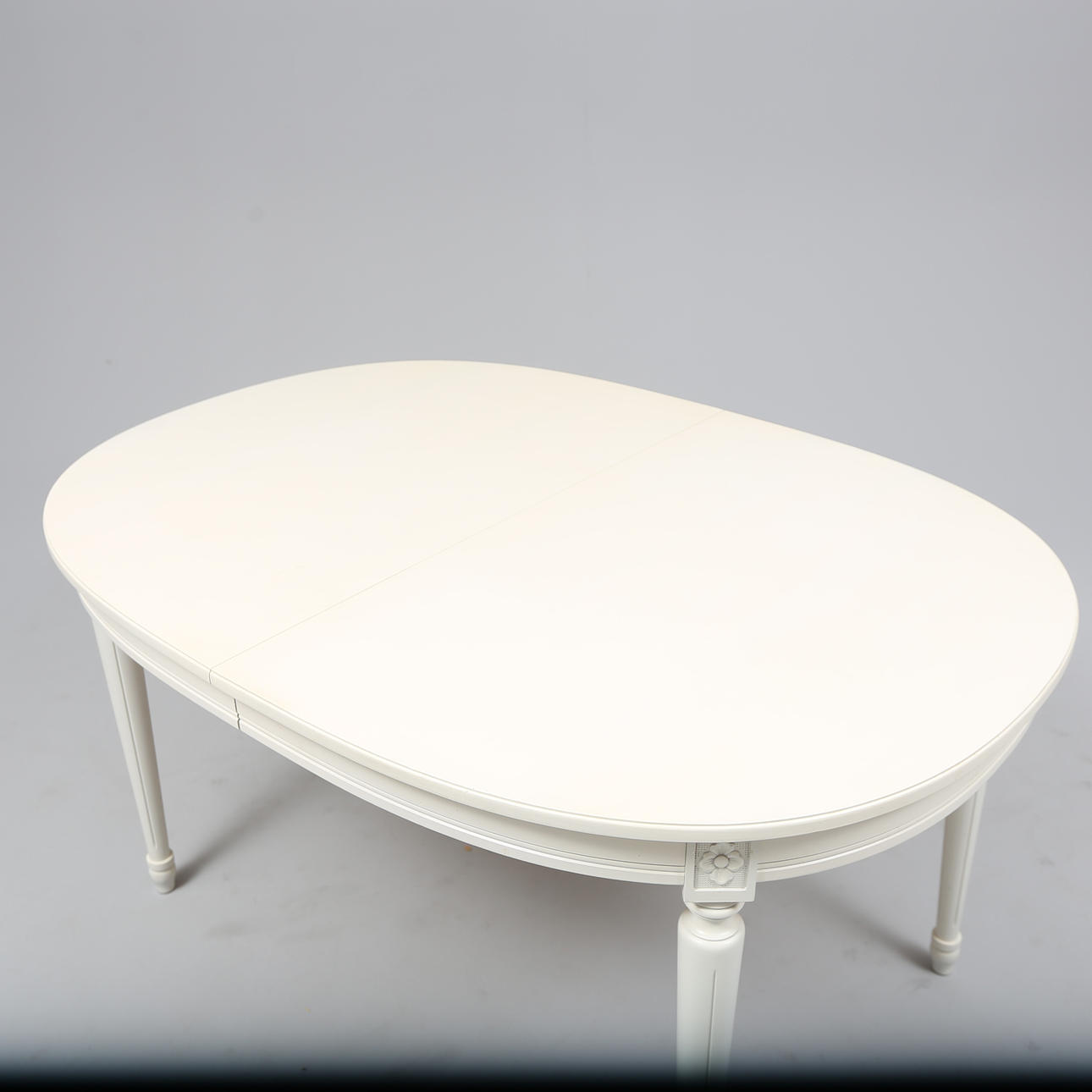4 chairs. Table height approx. 74 cm. Disc approx. 133x99 cm. 2 discs, width approx. 47 cm.