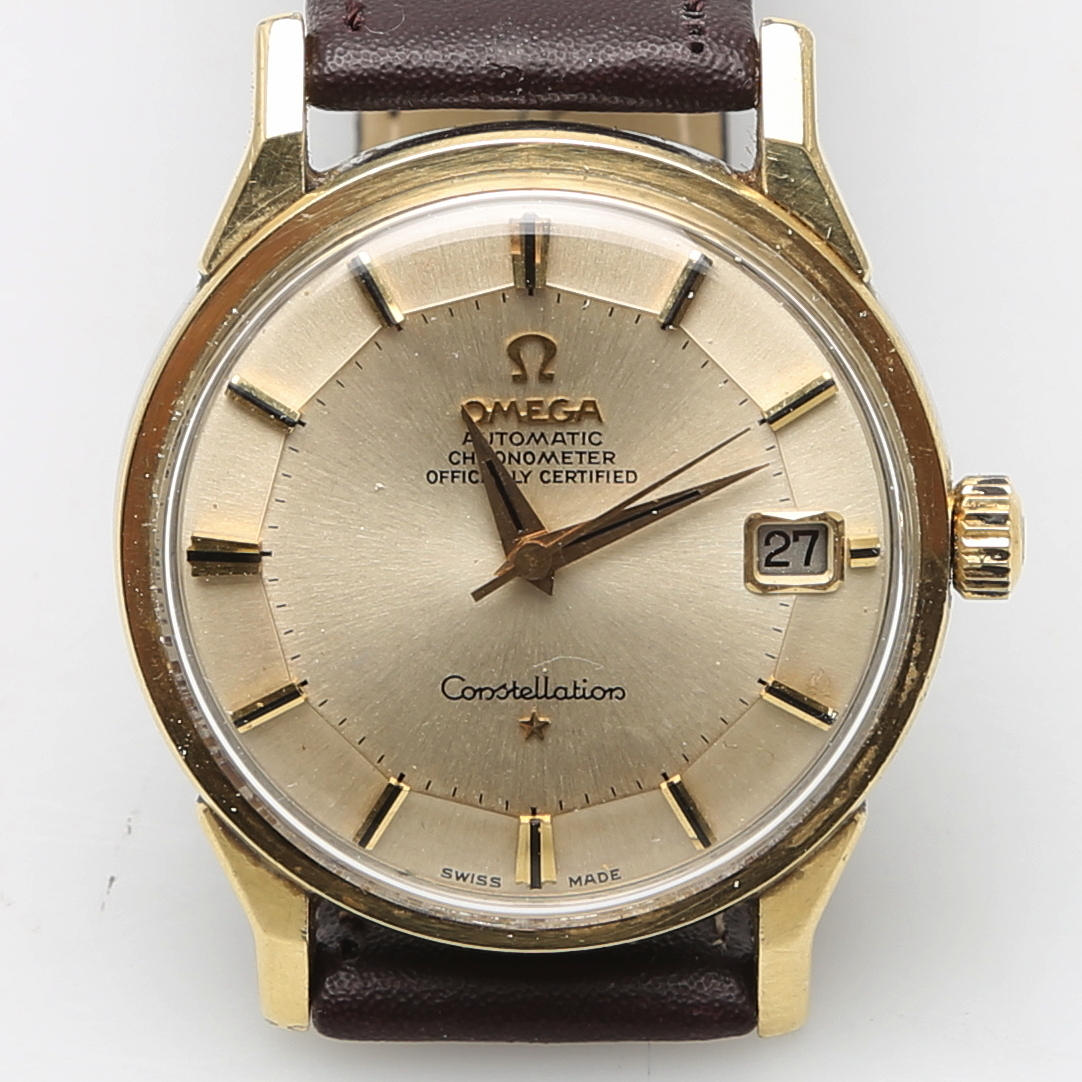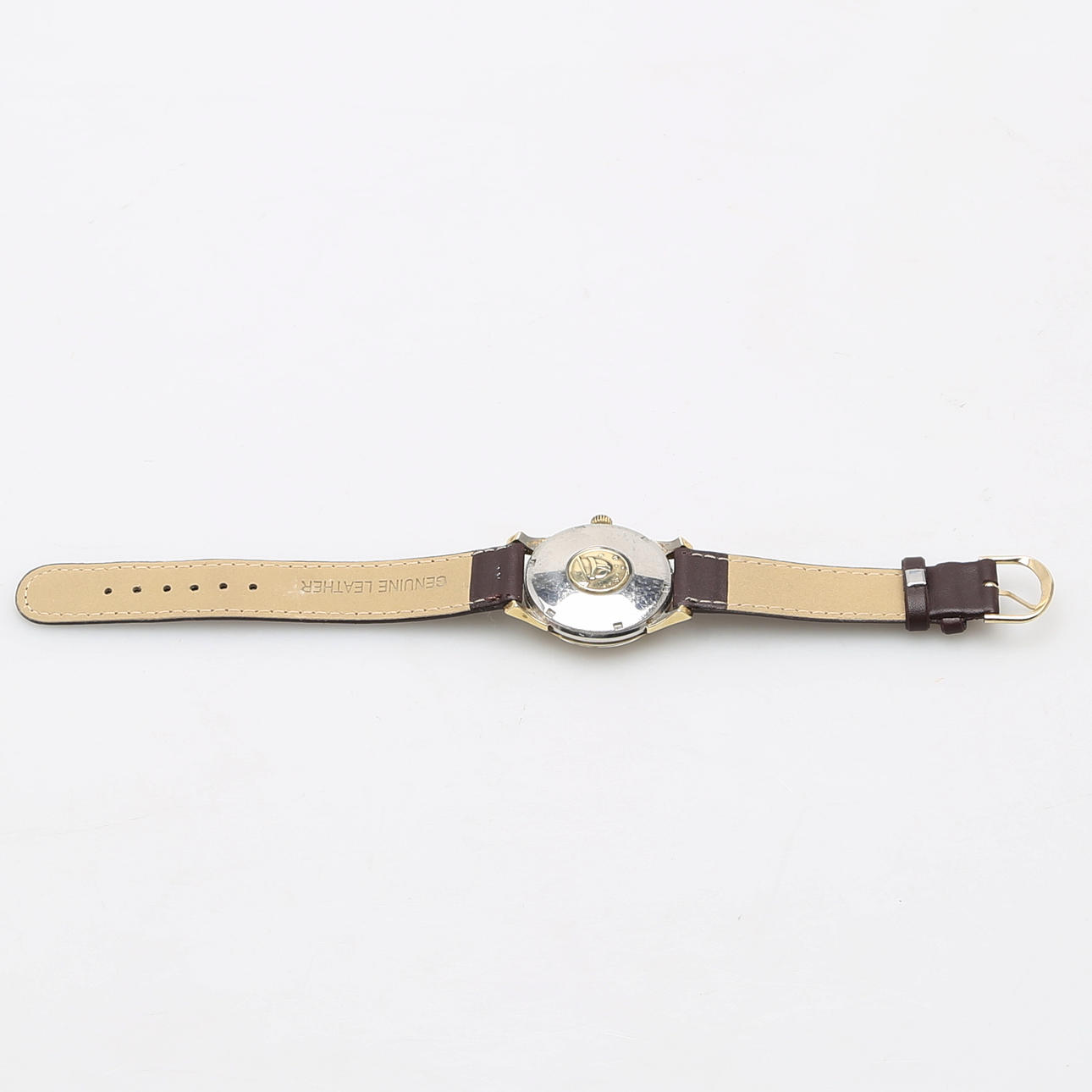 Case 34 mm, gold on steel, from 1967, caliber 564, 24 jewels, adjusted in 5 positions, temperature compensator, date display.