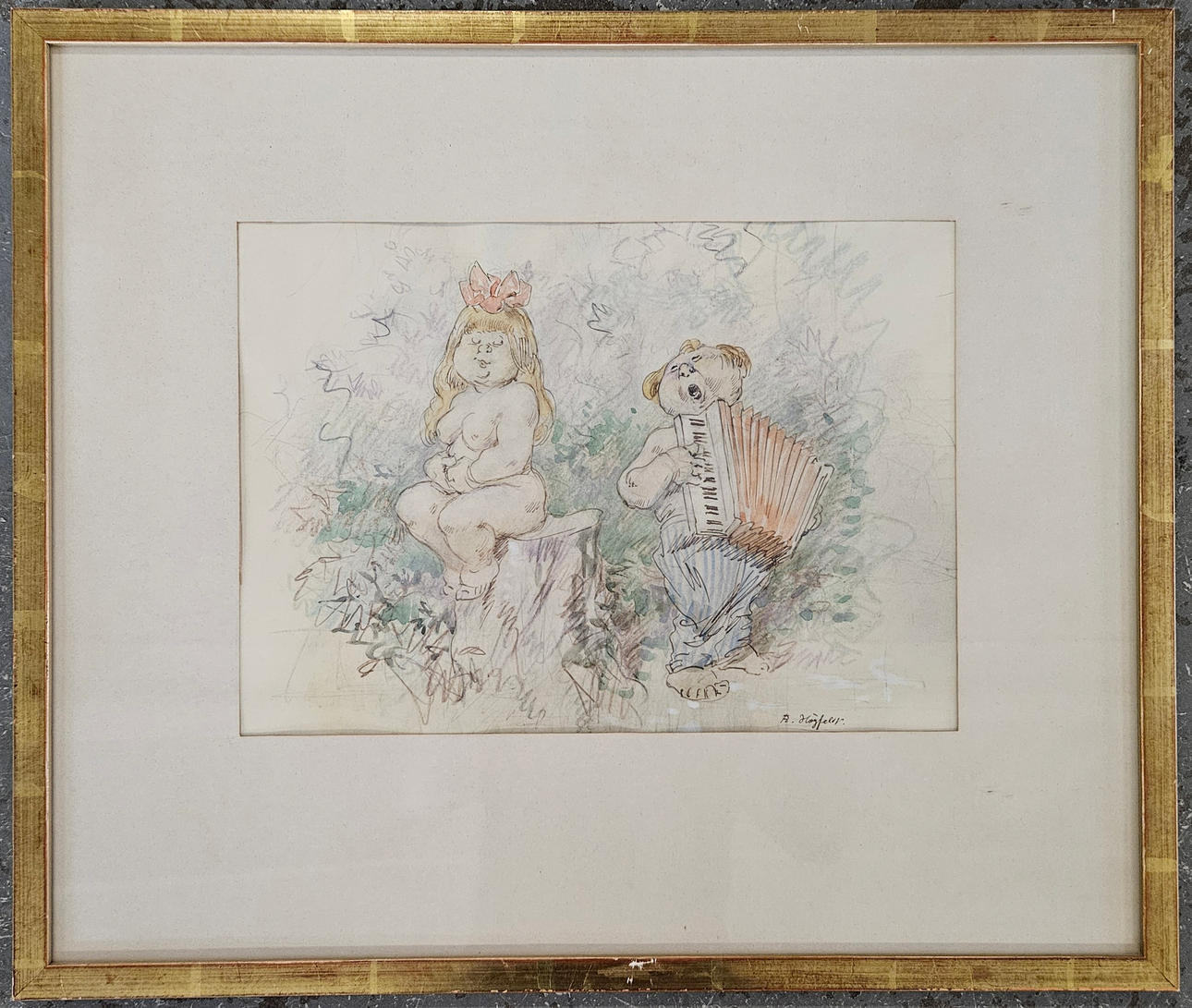 4454719. ROBERT HÖGFELDT. Figure composition, mixed media, signed.