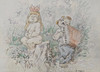 Not examined out of frame. Gilding of the frame with wear. Paper slightly yellowed.