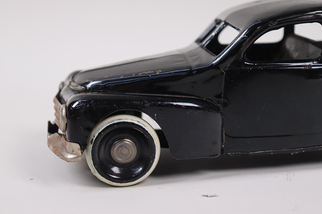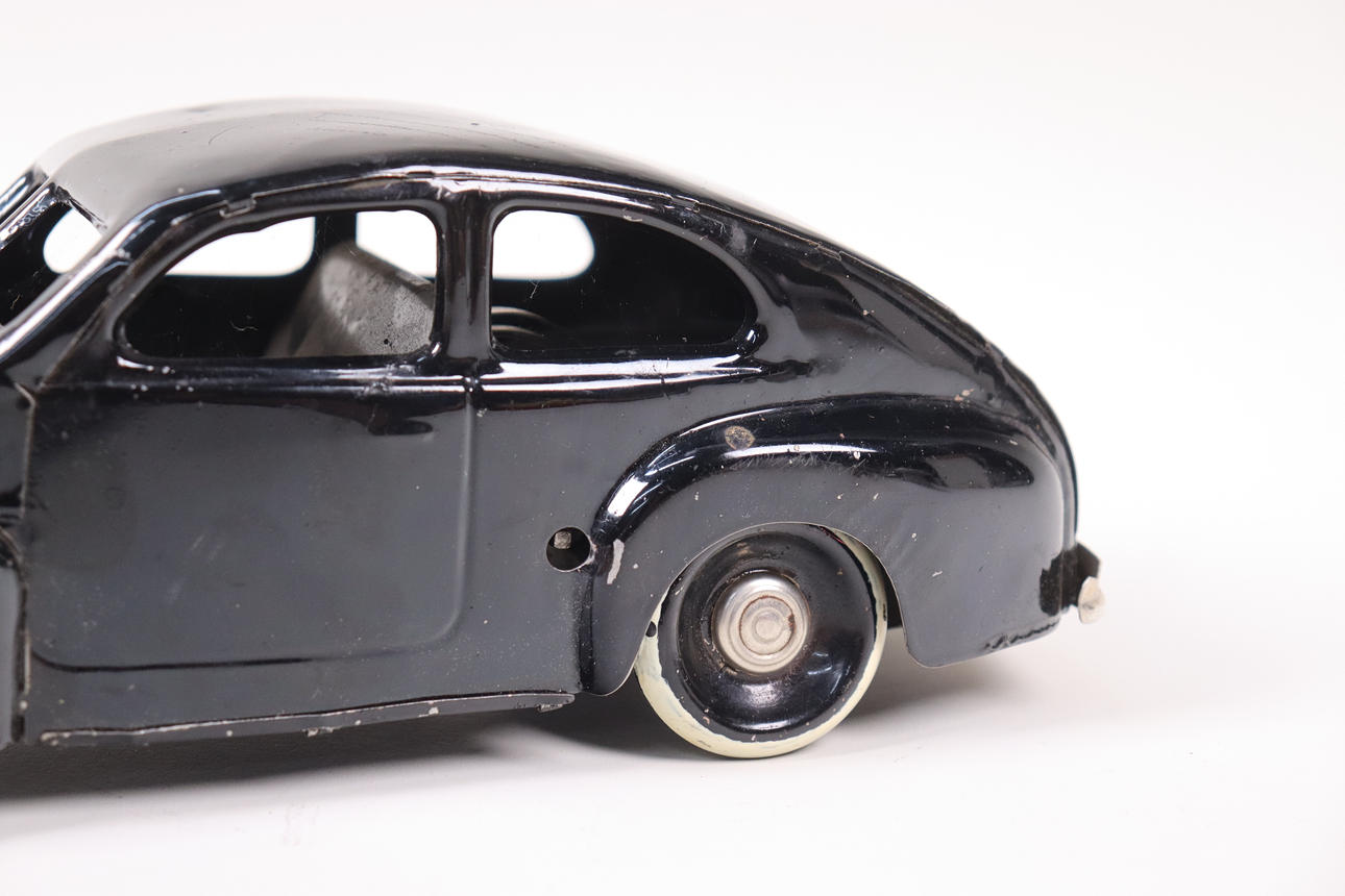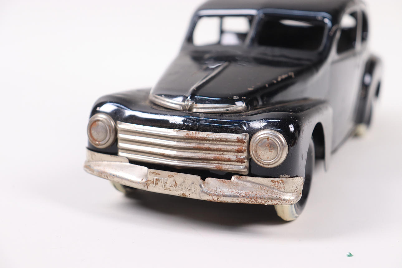 Normal wear and tear, marks, slight rust on bumper, handles on trunk lid are missing. Clockwork doesn't seem to work as it should.