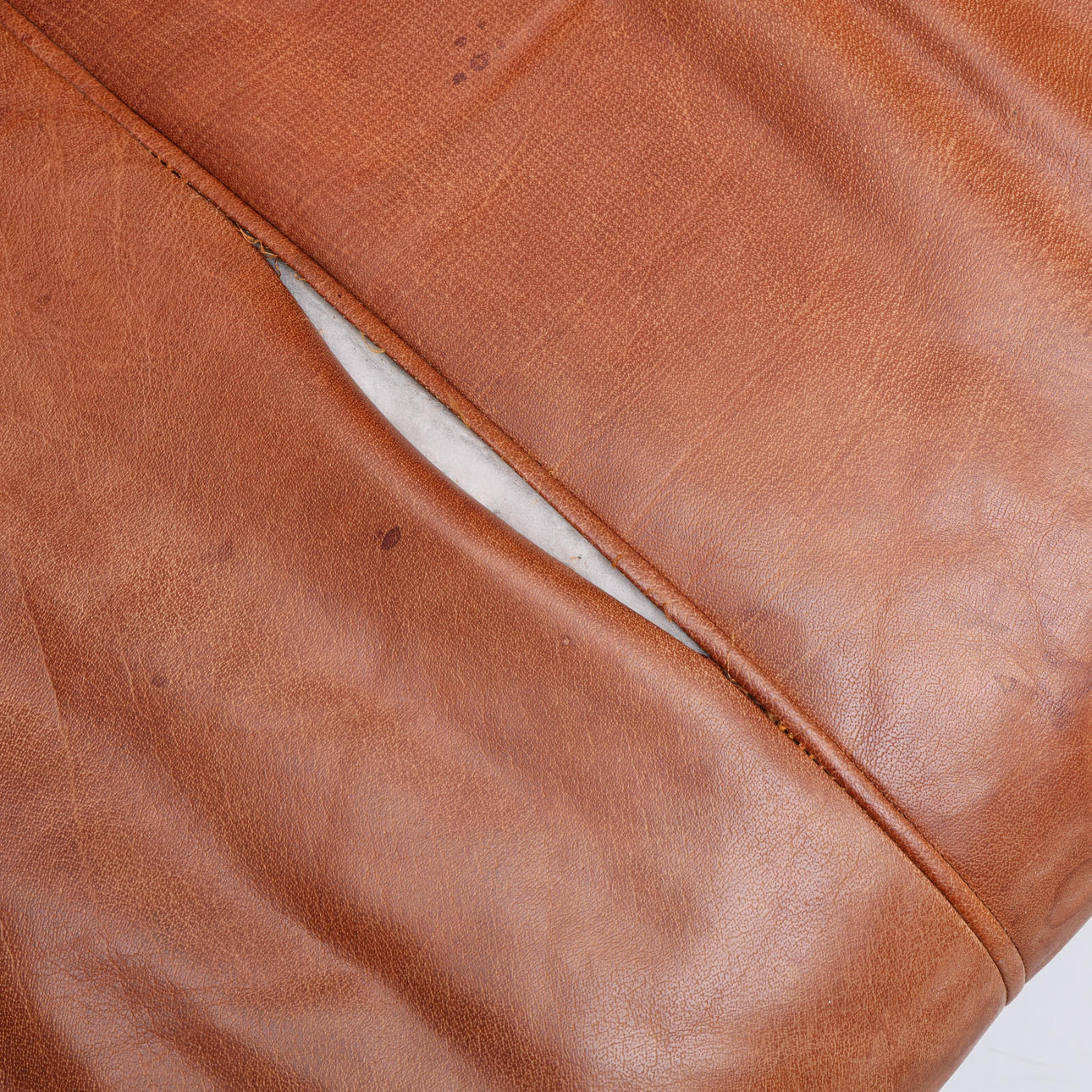 Normal wear and tear. Partly dry leather.