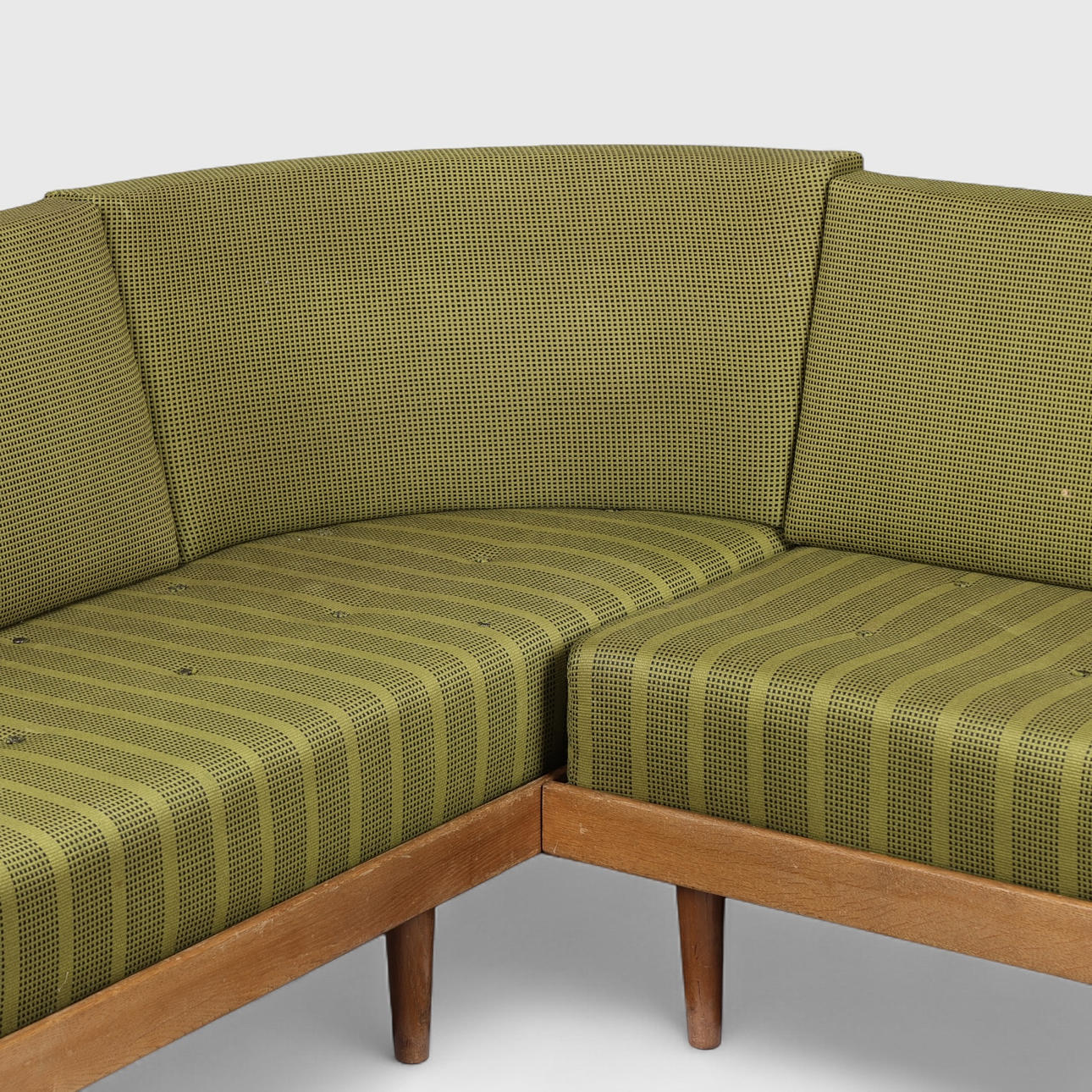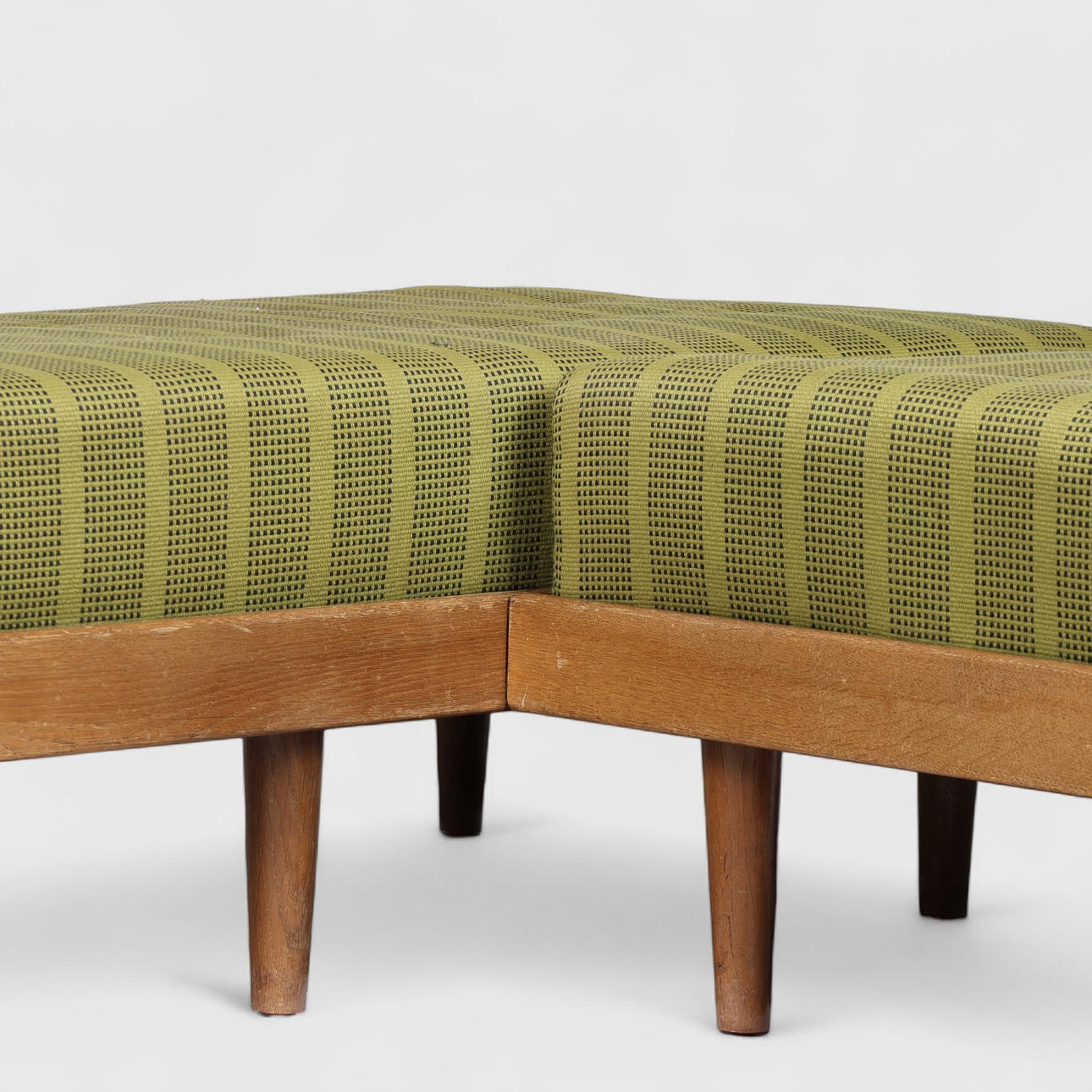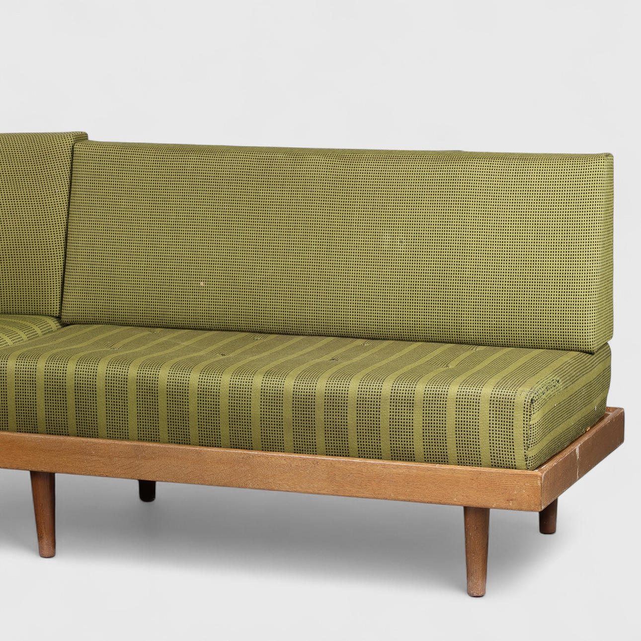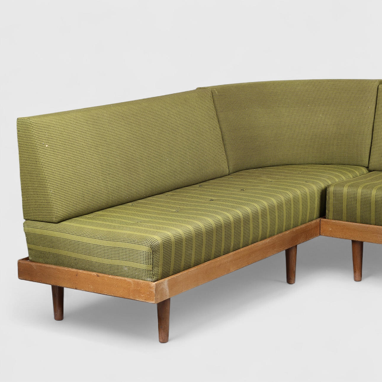 4455237. Corner sofa/daybed, oak frame, loose mattresses and back upholstered with wool, Danish cabinetmaker, Denmark, mid 1900s (7).