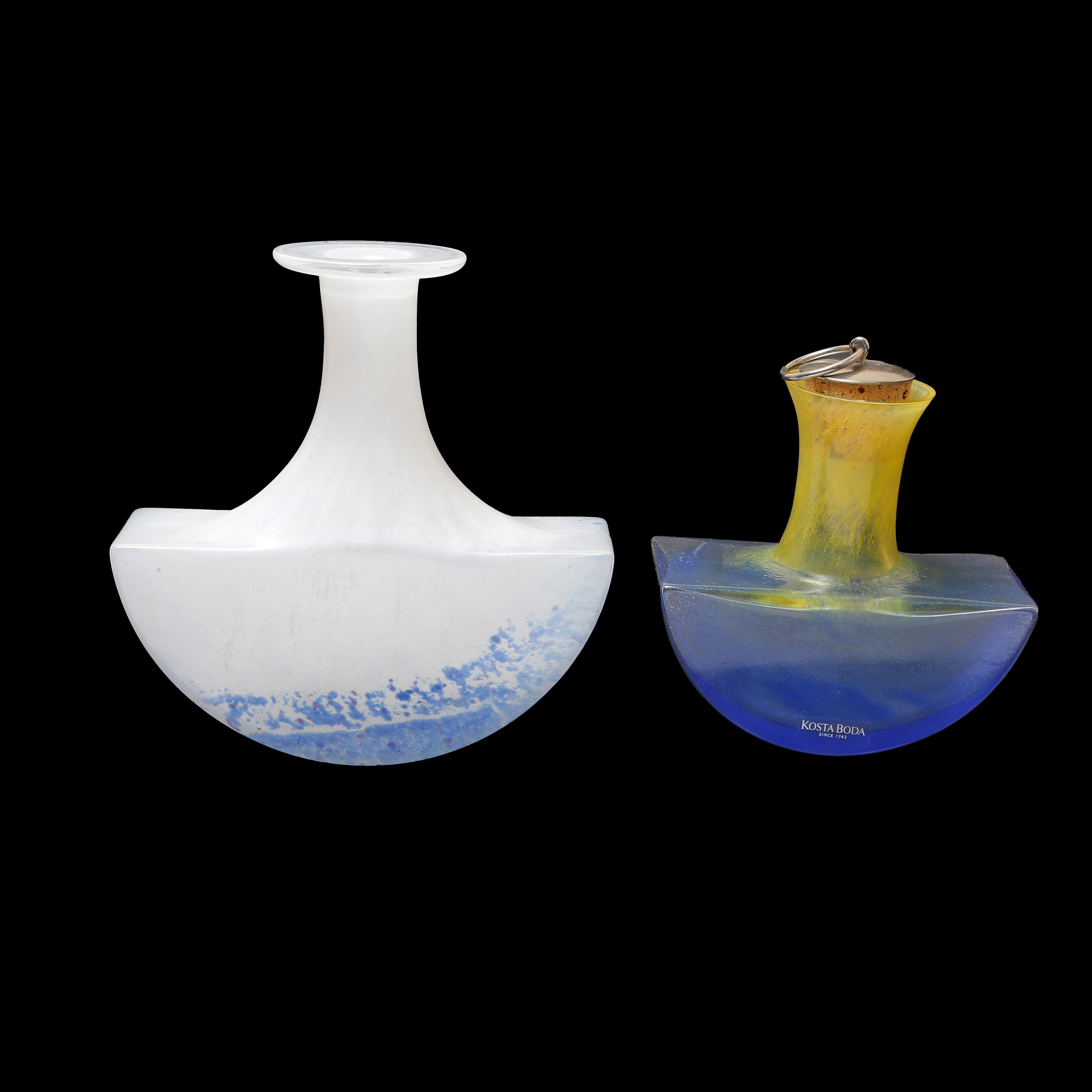 4455277. KJELL ENGMAN. 2 BOTTLES, 1 SIGNED, COSTA BODA.