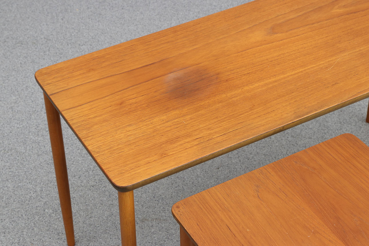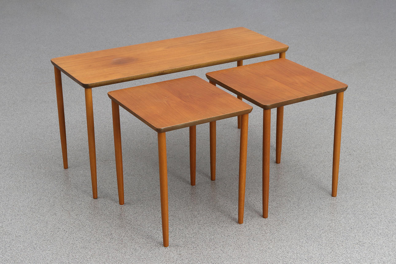 4455437. SET TABLE, THREE PARTS. It's teak. 1960s. Unmarked.